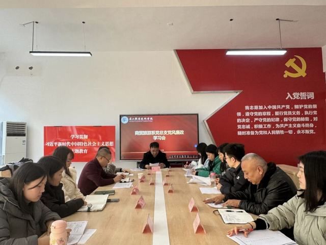 1月15-16日,商贸旅游系学生党支部、教师党支部分别在2212党员活动室开展党风廉政学习会,学习会由学生党支部书记袁娇、教师党支部书记唐君主持。