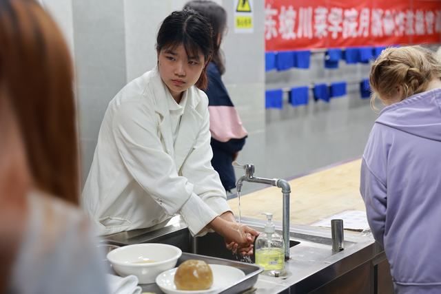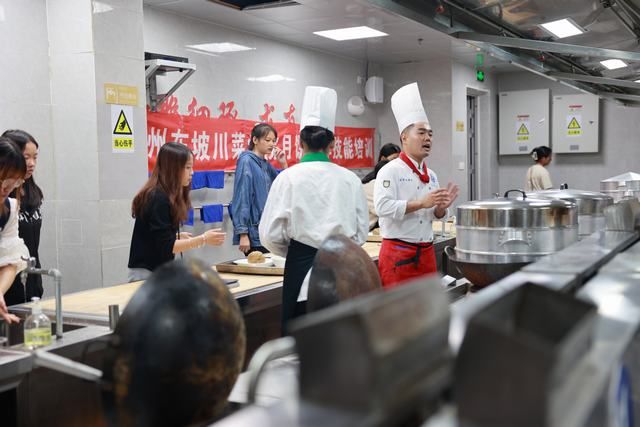 9月26日,眉州东坡川菜学院联合学校妇联在东苑食堂3楼实训室开展了月饼制作技能培训,眉州名匠、烹饪工艺与营养专业教师陶斌鑫开展培训,40名女大学生代表参加活动。