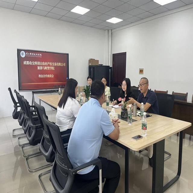 9月26日,旅游与财贸学院采用“请进来”的方式与成都农交所眉山所召开座谈交流会。成都农交所眉山所品牌形象部部长、眉山市电商协会秘书长李伟博,旅游与财贸学院院长廖明江、财贸教研室主任杨思羽、市场营销专业负责人刘莎莉、专任教师肖娴参会。