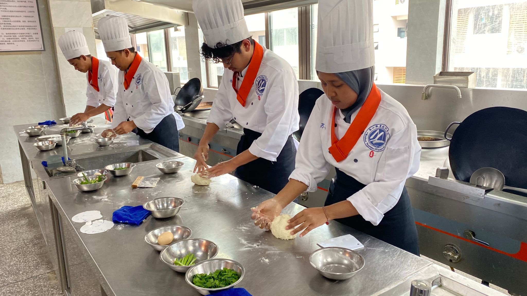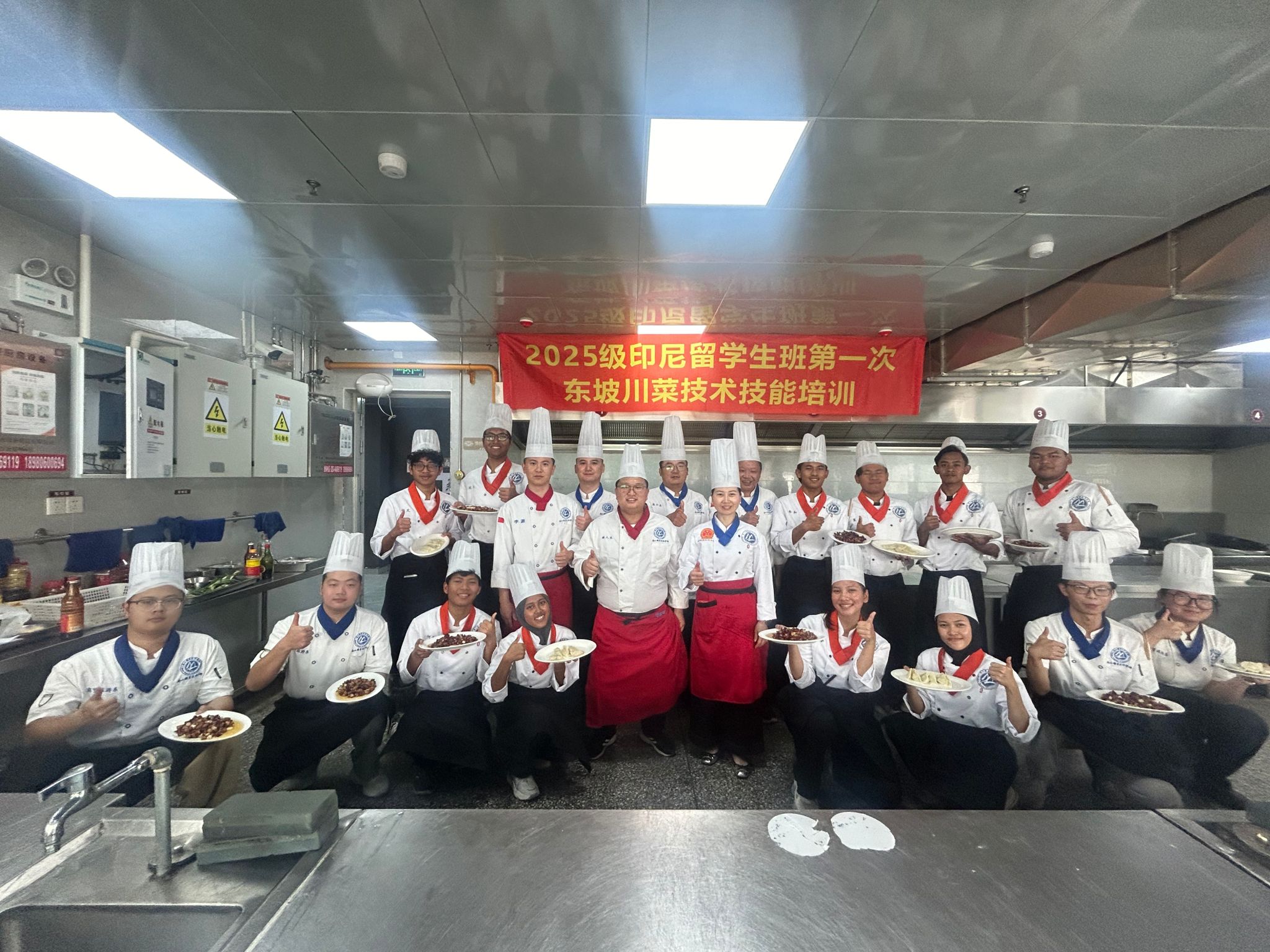 为传承与弘扬东坡饮食文化,深化中外文化交流互鉴,5月21日,旅游与财贸学院举办了以东坡菜品为主的川菜技能大比拼暨文化交流活动。来自印度尼西亚的留学生与烹饪专业学子齐聚一堂,以厨艺为桥梁,共同探索东坡饮食文化蕴含的中华美食智慧。