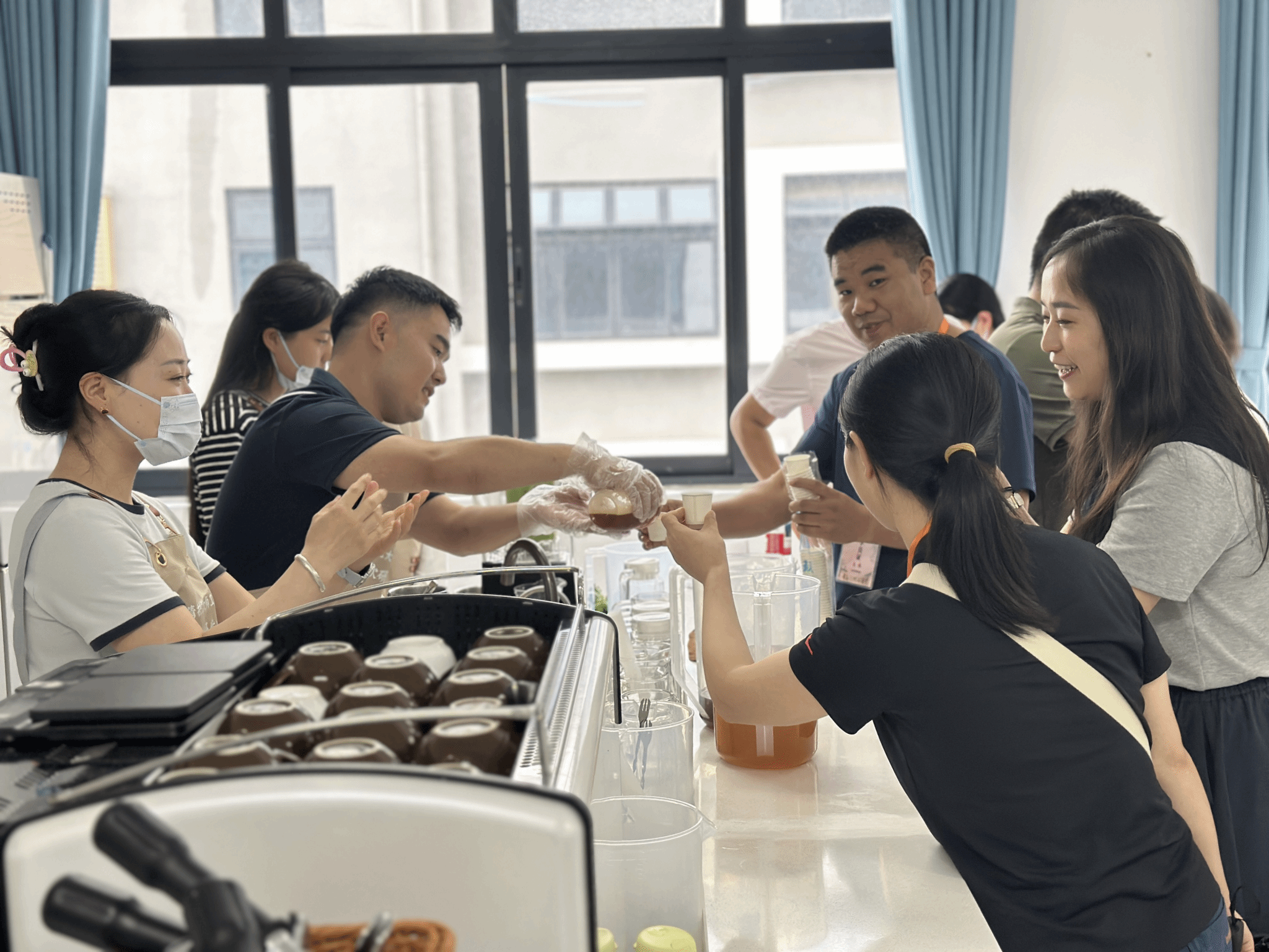 参观人员品尝了多款兼具地方特色与创新理念的新茶饮产品,对其传统与现代的融合表示赞赏。交流过程中,大家围绕新茶饮产品的市场定位、技术创新与人才培养等话题展开探讨,共同展望调饮技艺传承创新在推动名师名匠工作室等高质量建设中的积极作用。