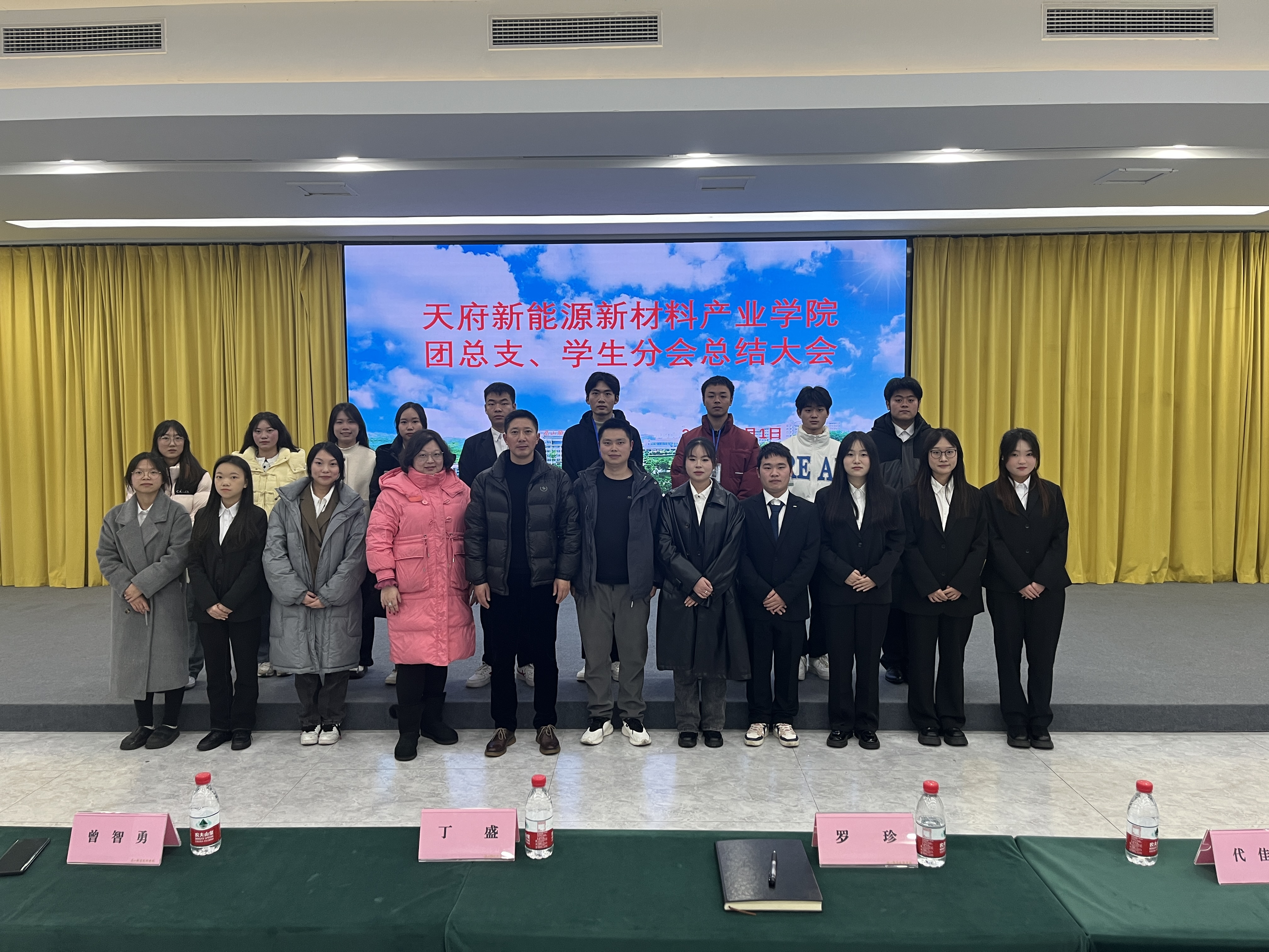 1月1日,天府新能源新材料产业学院在学校招就中心二楼会议室召开2023年秋季学期团总支、学生分会总结大会,产业学院党总支书丁盛出席会议并讲话,团总支书记曾智勇主持会议。