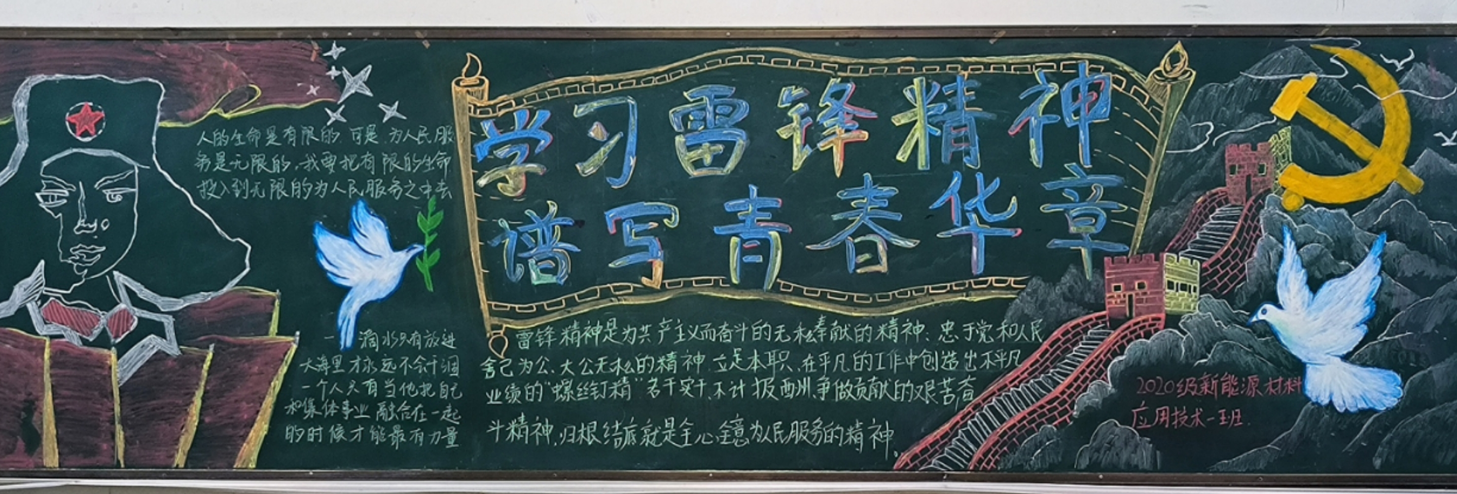 产业学院还在全院范围内开展了“传承雷锋精神”黑板报评比、“学雷锋”海报宣传等系列活动,旨在通过主题活动、学习分享、志愿服务等形式,传承和弘扬雷锋精神,培养学生的劳动习惯和实践能力,努力促进“学雷锋”志愿服务活动常态化,进一步推动校园文明建设。