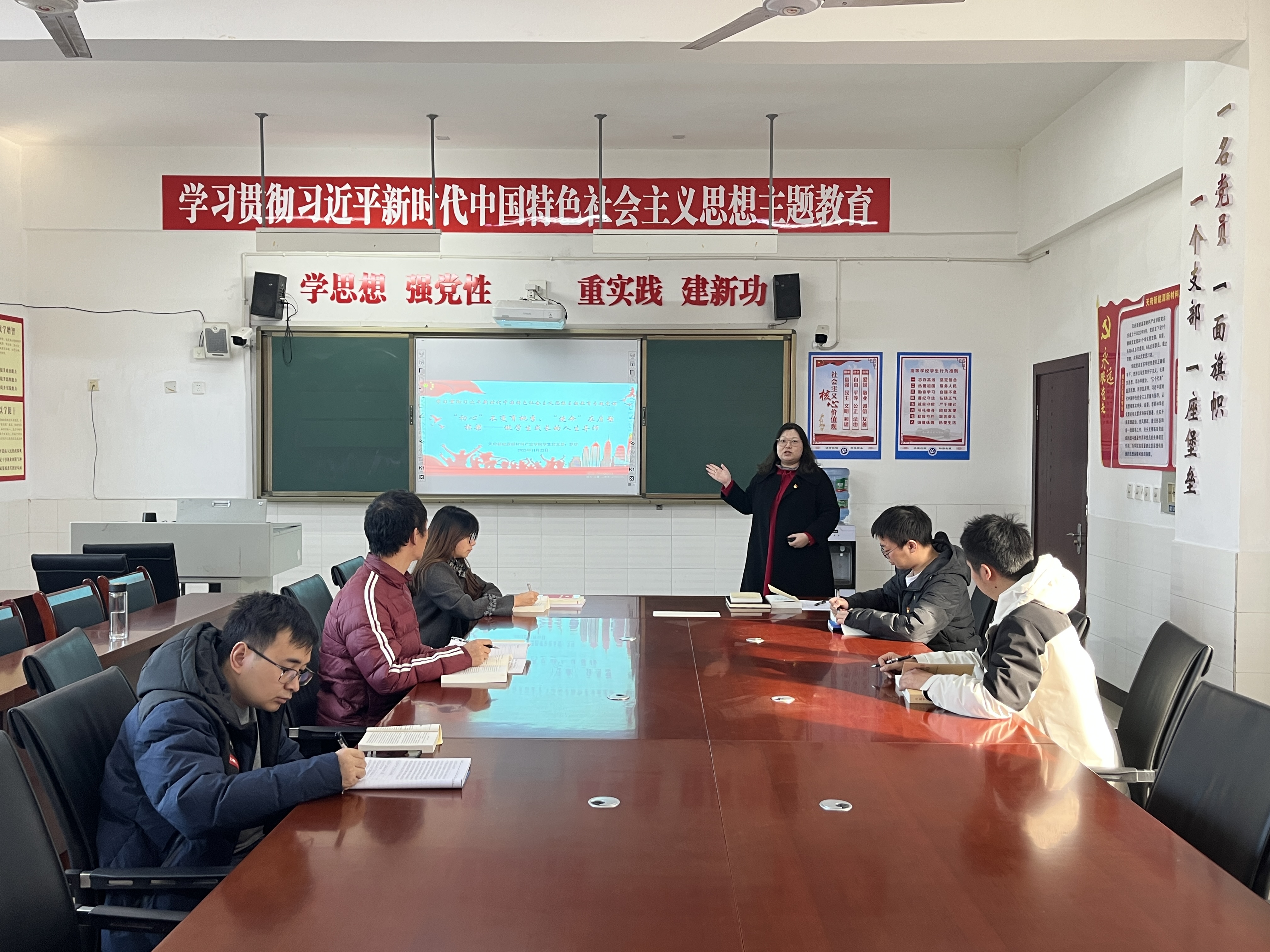 11月22日,天府新能源新材料产业学院学生党支部书记罗珍在1207党员活动室为天府新能源新材料产业学院学生党支部党员讲授《“初心”不变育桃李、“使命”在肩塑栋梁——做学生成长的人生导师》专题党课。