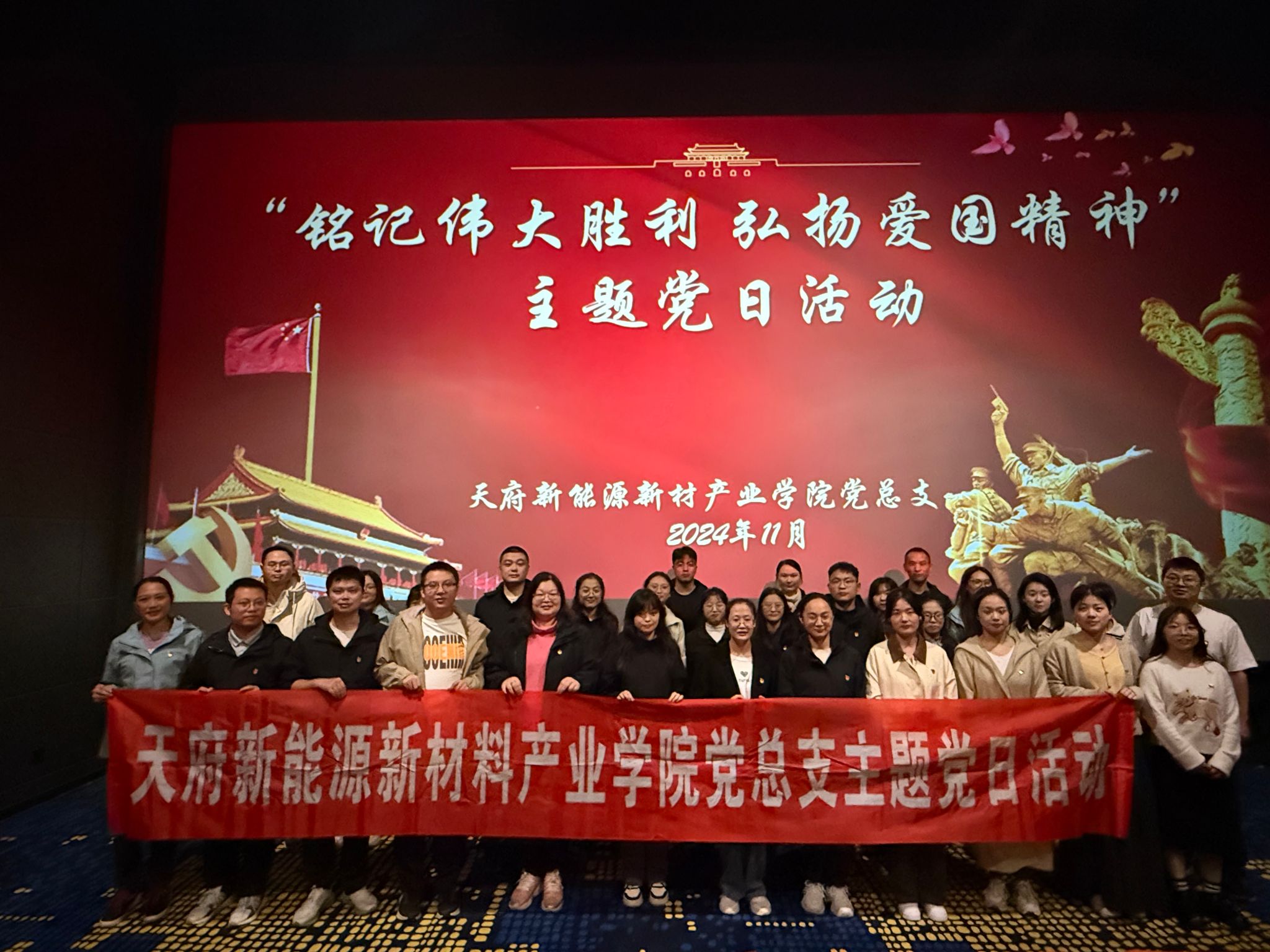 11月6日,天府新能源新材料产业学业组织全体党员开展“铭记伟大胜利 弘扬爱国精神”主题党日活动,集体观看电影《志愿军:存亡之战》。