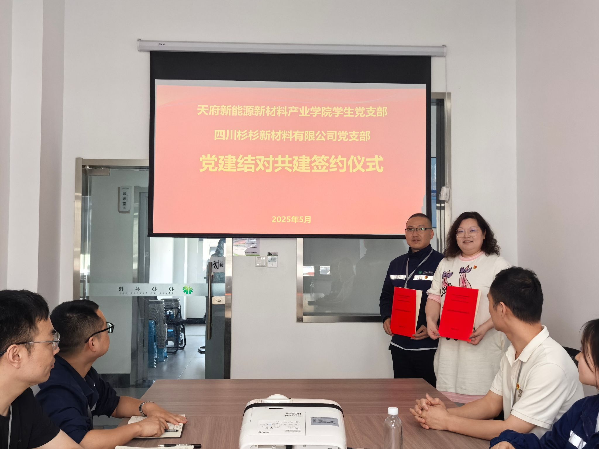 5月19日,天府新能源新材料产业学院学生党支部与四川杉杉新材料有限公司党支部在四川杉杉新材料有限公司会议室举行党建结对共建签约仪式。产业学院学生党支部书记罗珍、四川杉杉新材料有限公司党支部书记祝义成出席签约仪式。