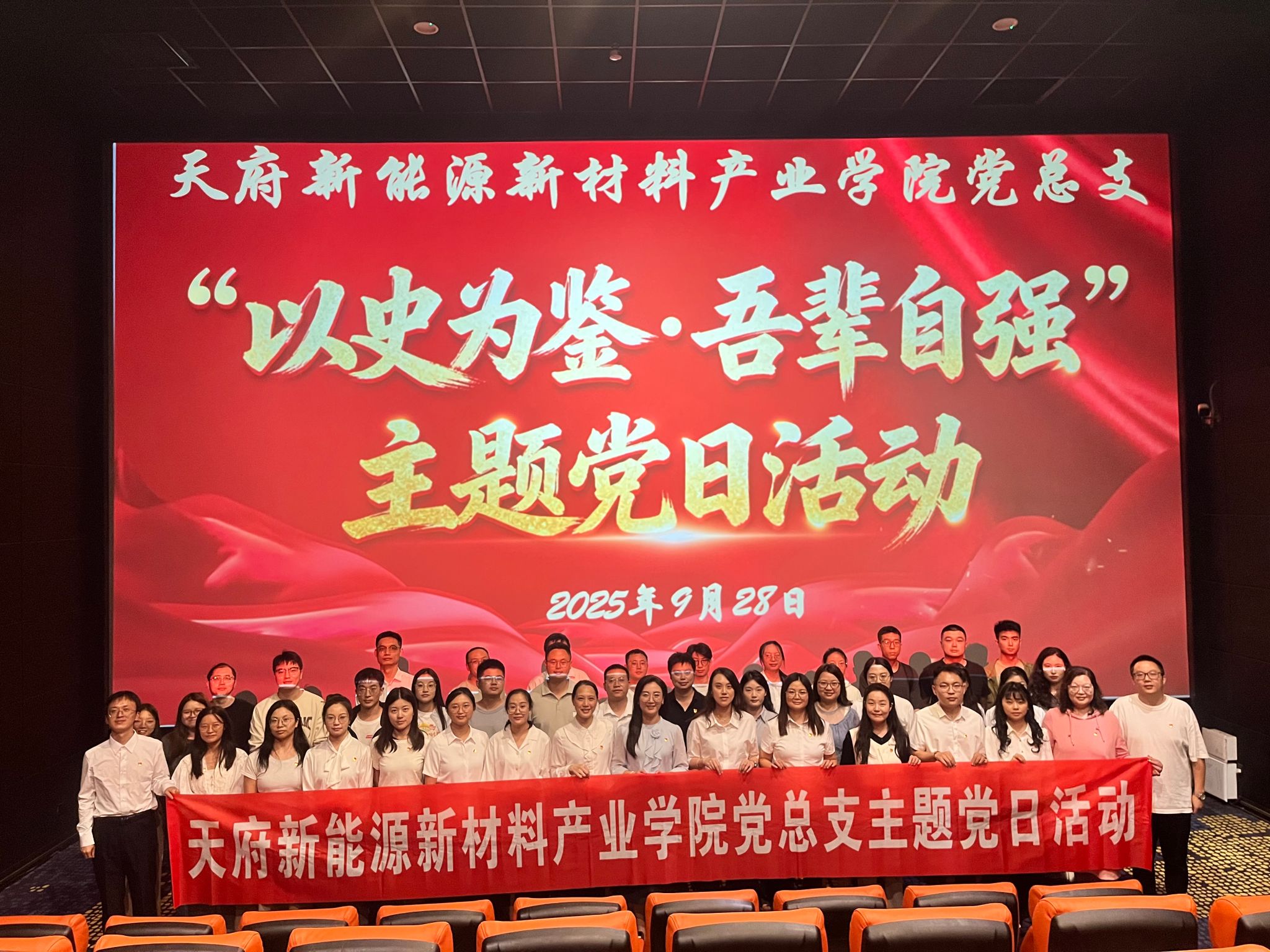 为纪念中国人民抗日战争暨世界反法西斯战争胜利80周年,深刻缅怀革命先烈的英勇事迹,弘扬伟大抗战精神。9月28日,天府新能源新材料产业学院党总支开展“以史为鉴·吾辈自强”主题党日活动,组织观看爱国主义教育影片《731》,通过沉浸式的历史教育,引导党员干部从历史中汲取奋进力量。