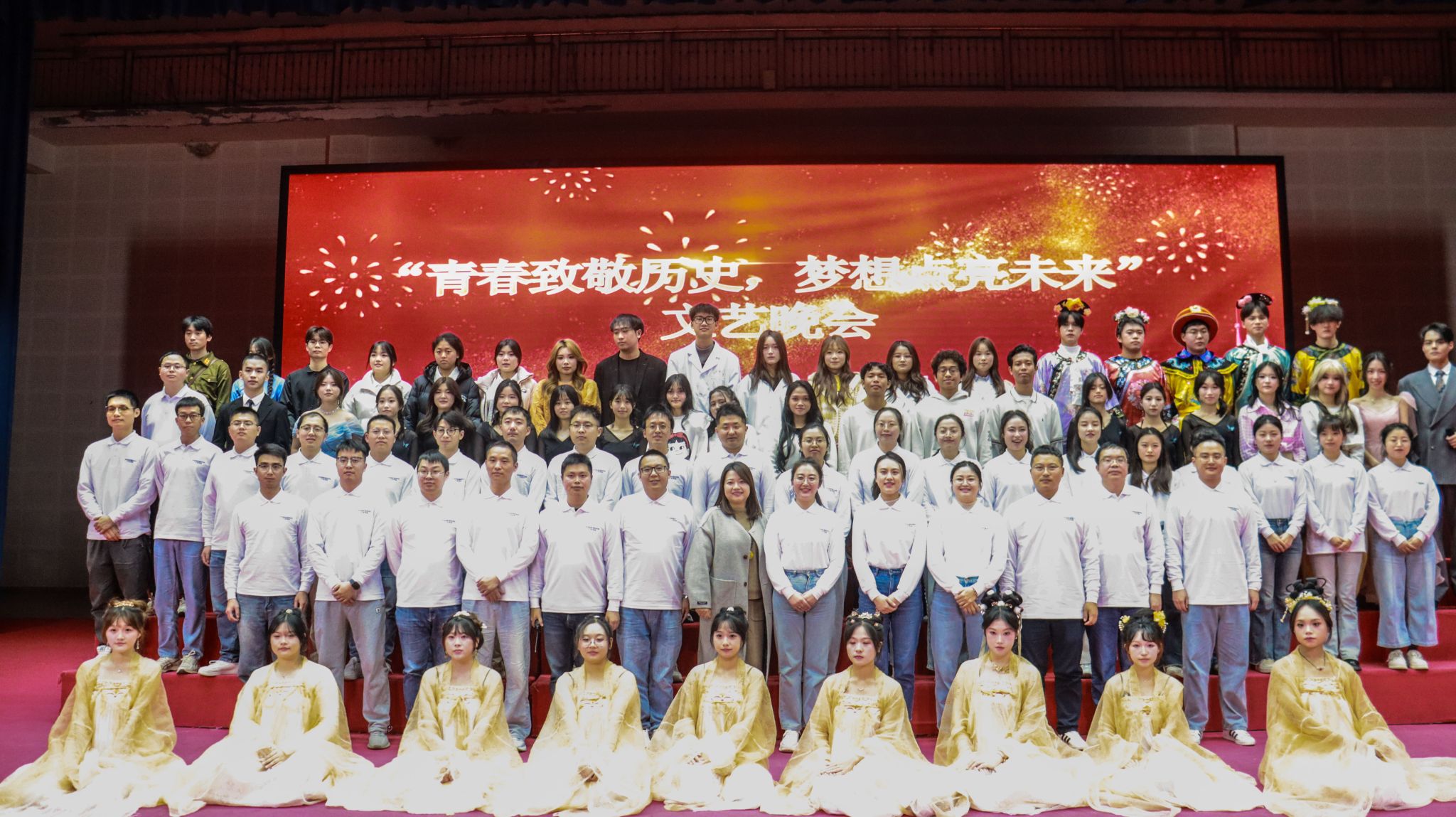 整场晚会主题鲜明、形式多样、内涵深刻。舞台剧《破晓》通过感人至深的表演,再现了历史关头青年的觉醒与担当;印尼留学生倾情演唱的歌曲《童话》,以独特的文化韵味搭建起友谊的桥梁,体现了学院国际化育人的丰硕成果;古典舞《浮光》轻盈优美、意境深远,创意影子剧《影隙里的新芒》构思新颖、寓意深刻,充分展示了学院师生多才多艺、团结向上的精神面貌。