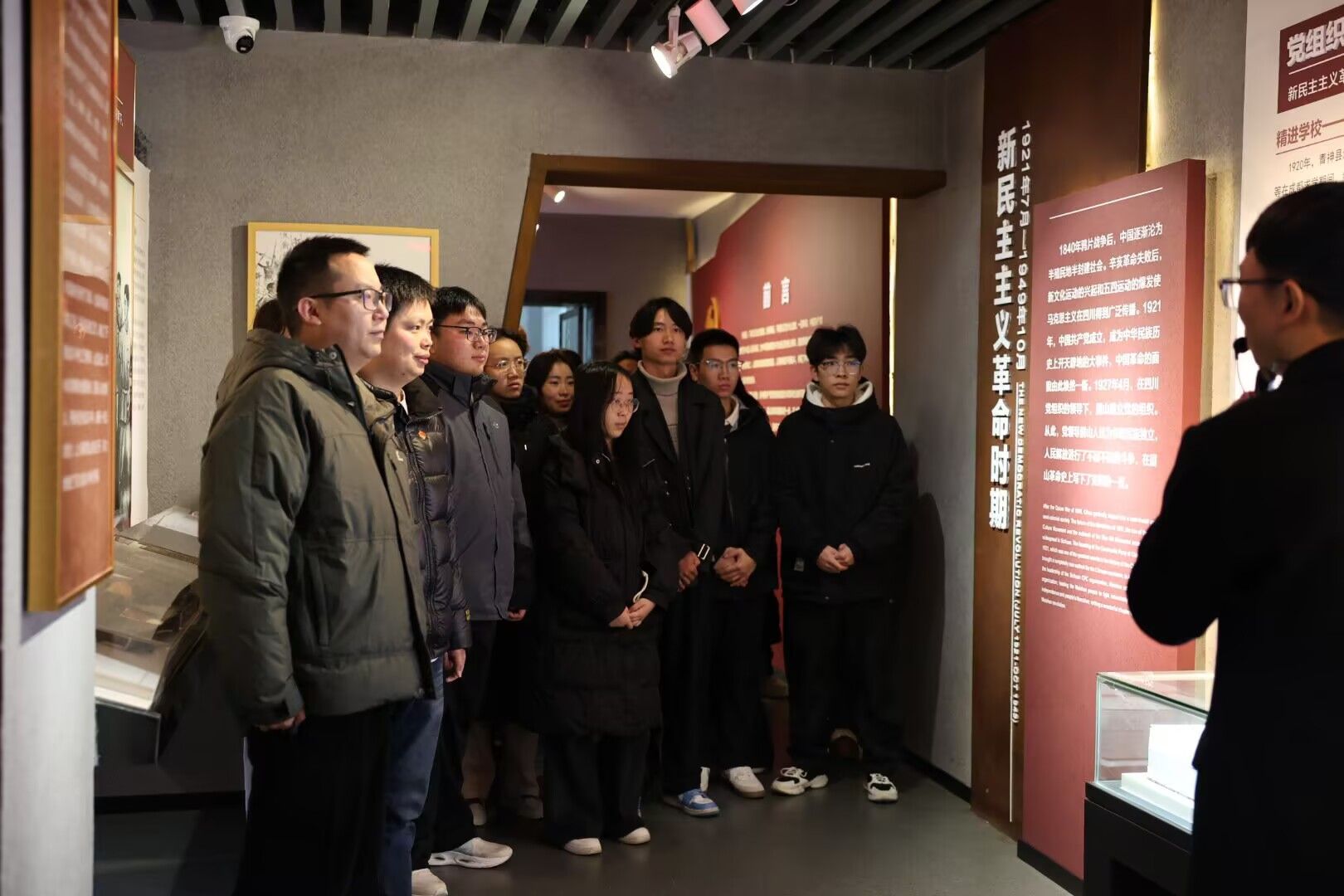 参观结束后,学生党支部党员代表与团学干部开展了现场交流。党员代表结合展陈内容,讲述了党、团历史与眉山地方革命史交织的生动故事,引导团学骨干深入思考在新时代背景下青年的责任与担当。交流中强调,要自觉传承红色基因,将爱国情怀融入日常,转化为刻苦学习、服务同学、奉献社会的实际行动,努力在新能源、新材料领域的专业学习与实践中展现青春力量。