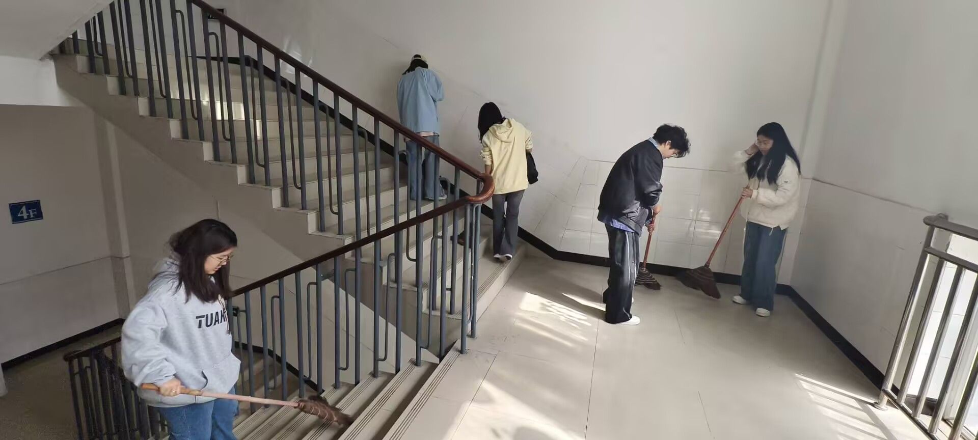 此次校园大扫除既是一堂生动的劳动教育课,也是一次深刻的雷锋精神传承实践。同学们在亲手美化校园的过程中,深刻体会劳动价值与奉献快乐,展现出新时代青年务实有为、甘于奉献的精神风貌。下一步,学院团总支将持续深化“雷锋月”主题教育,引导青年学子将雷锋精神内化于心、外化于行,在服务校园中书写新时代雷锋故事。