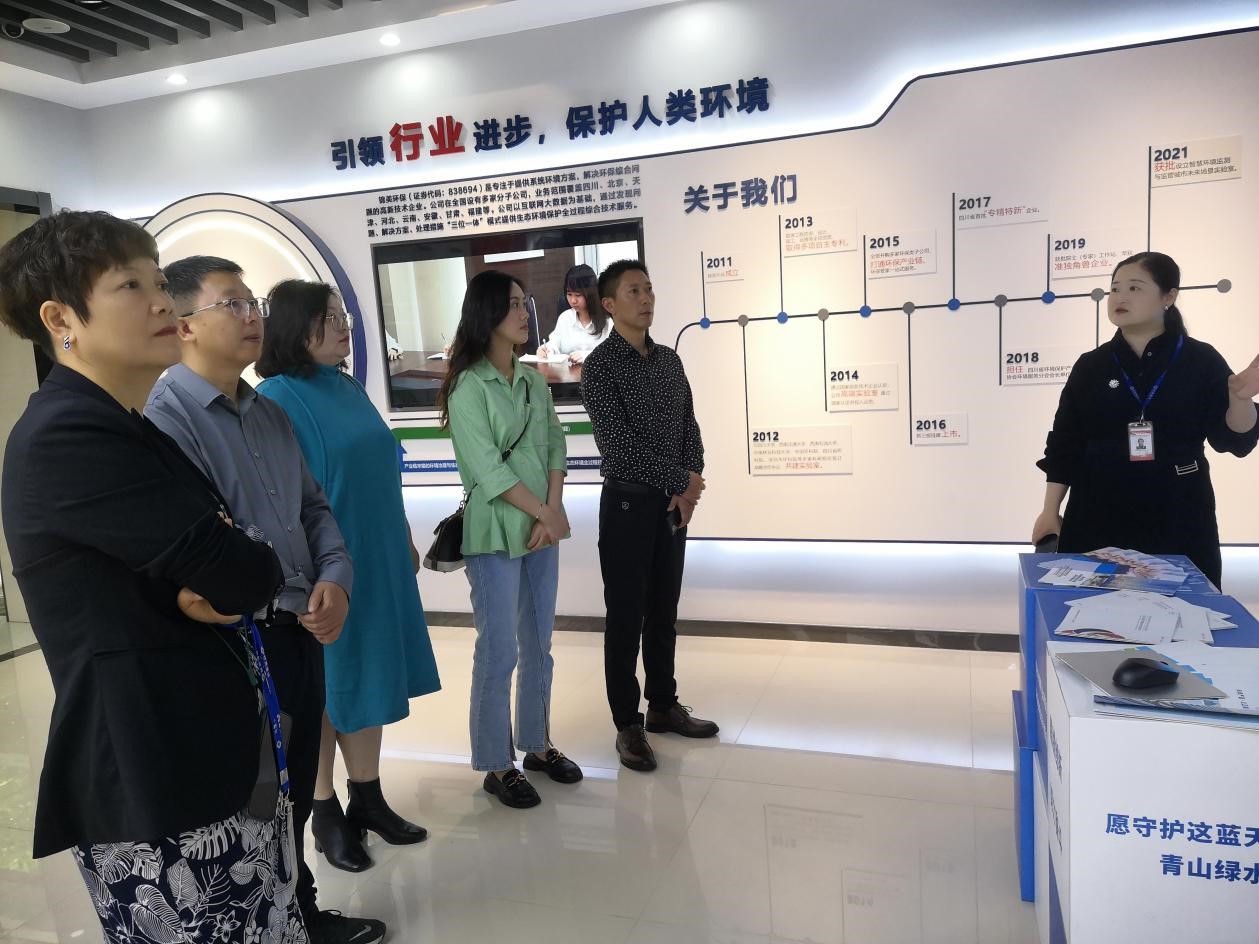 天府新能源新材料产业学院化工生物教研室主任谢碧秀、学工秘书罗珍,四川锦美环保(集团)股份有限公司总经理助理曾芸、锦美环保集团人力行政总监经晶参加考察调研。