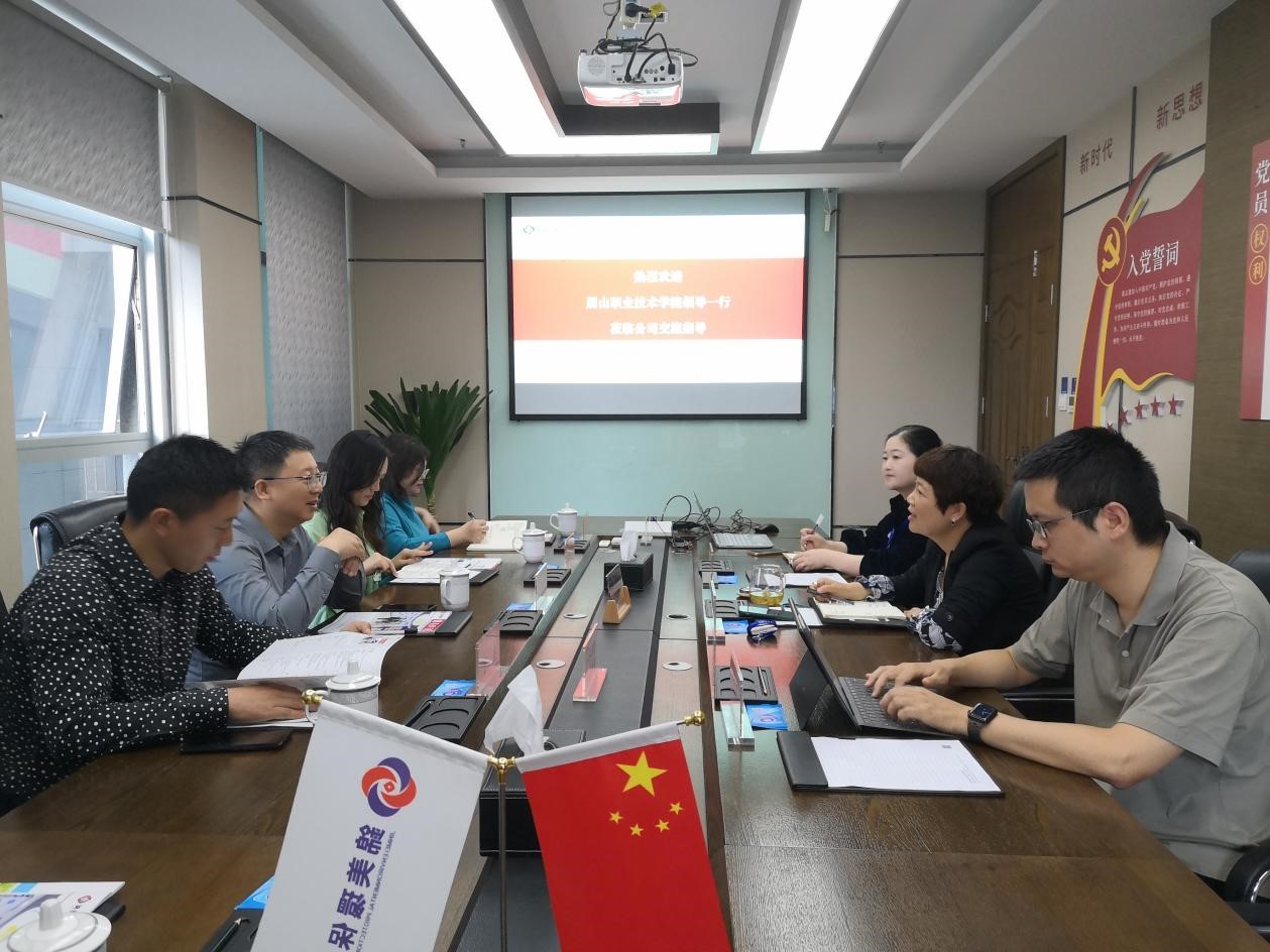 座谈会上,彭亚梅对杨兴江一行的到来表示欢迎,她介绍了公司的发展历史、组织架构、主导优势、服务面向、人员组成。杨兴江详细介绍了我校的办学历史、办学特色,希望双方全面推进校企深入合作,共同培养技术技能人才,为锦美环保高质量发展提供人才支撑。双方围绕人才培养、专业建设、师资队伍、项目合作等方面进行了深入交流探讨,并达成了开设“国测现代学徒制班”的合作意向。