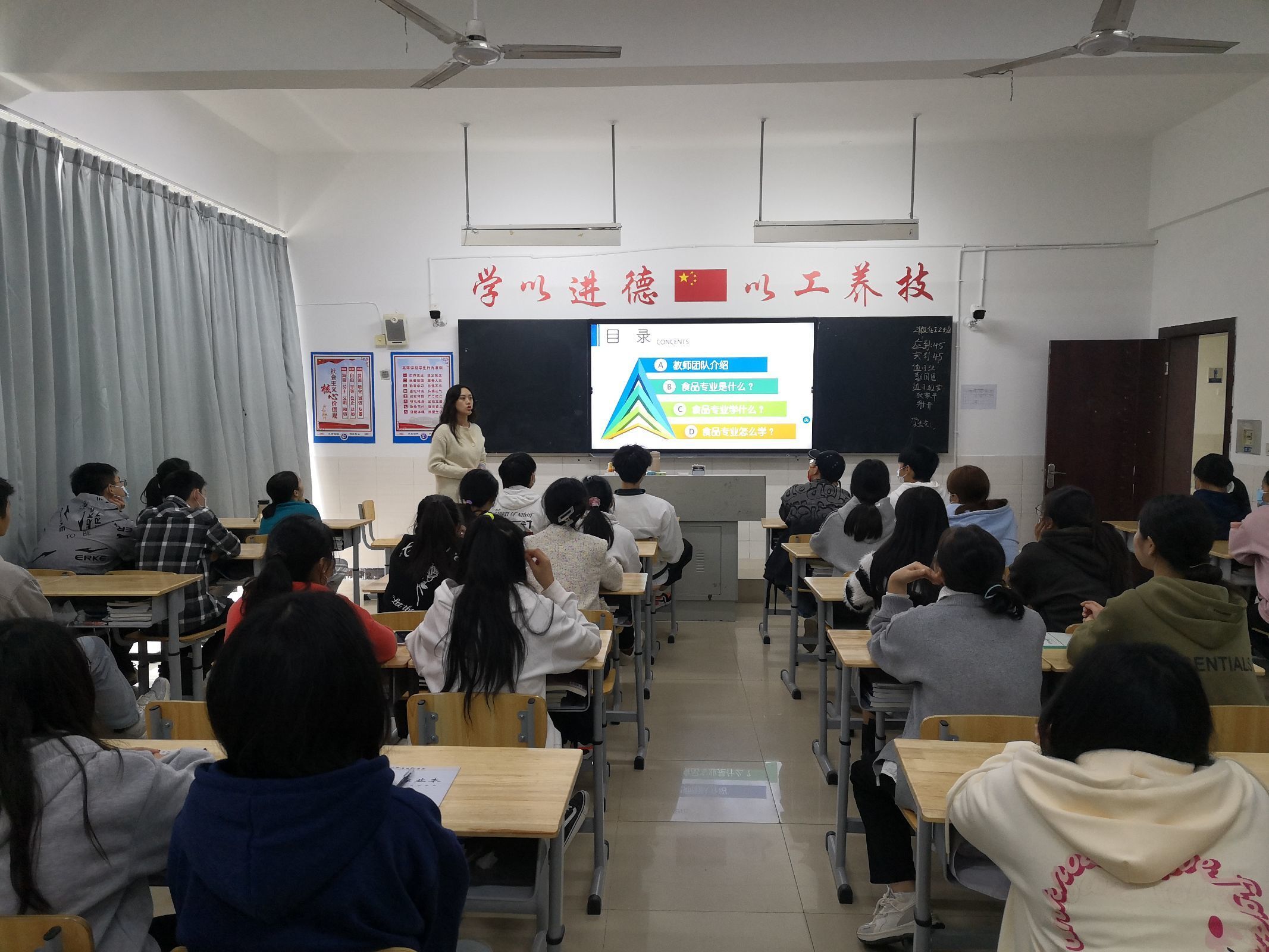 会上,产业学院院长贺明峰发表讲话,向22级应用化工技术专业和食品检验检测技术专业新生提出两点建议:一是应不断尝试,发现自我的长处;二是努力成为一名工匠,掌握职业技能。化工生物教研室主任陈婷婷和专业教师代表刘勇分别对食品检验检测技术专业和应用化工技术专业的新生进行了专业教育。刘勇详细介绍了应用化工技术专业的培养目标、专业核心技能、专业教师团队、专业课程设置等内容,着重强调当下是新能源材料发展最关键的时期,鼓励新生把握机遇,努力成为高素质技术技能人才。陈婷婷则分别从教师团队和专业特点、专业成绩等方面进行了深入的介绍,鼓励新生以梦为马,不负韶华。