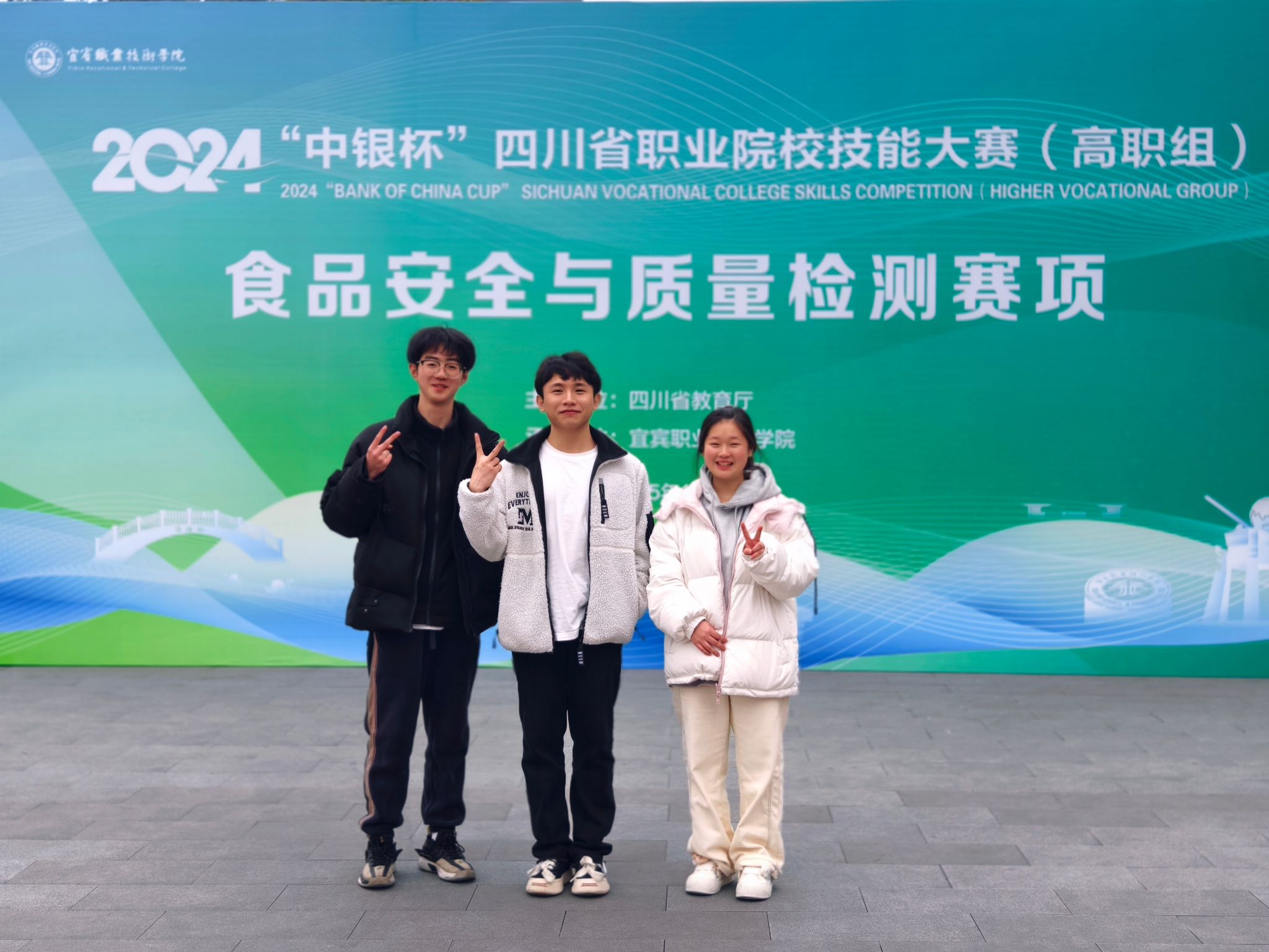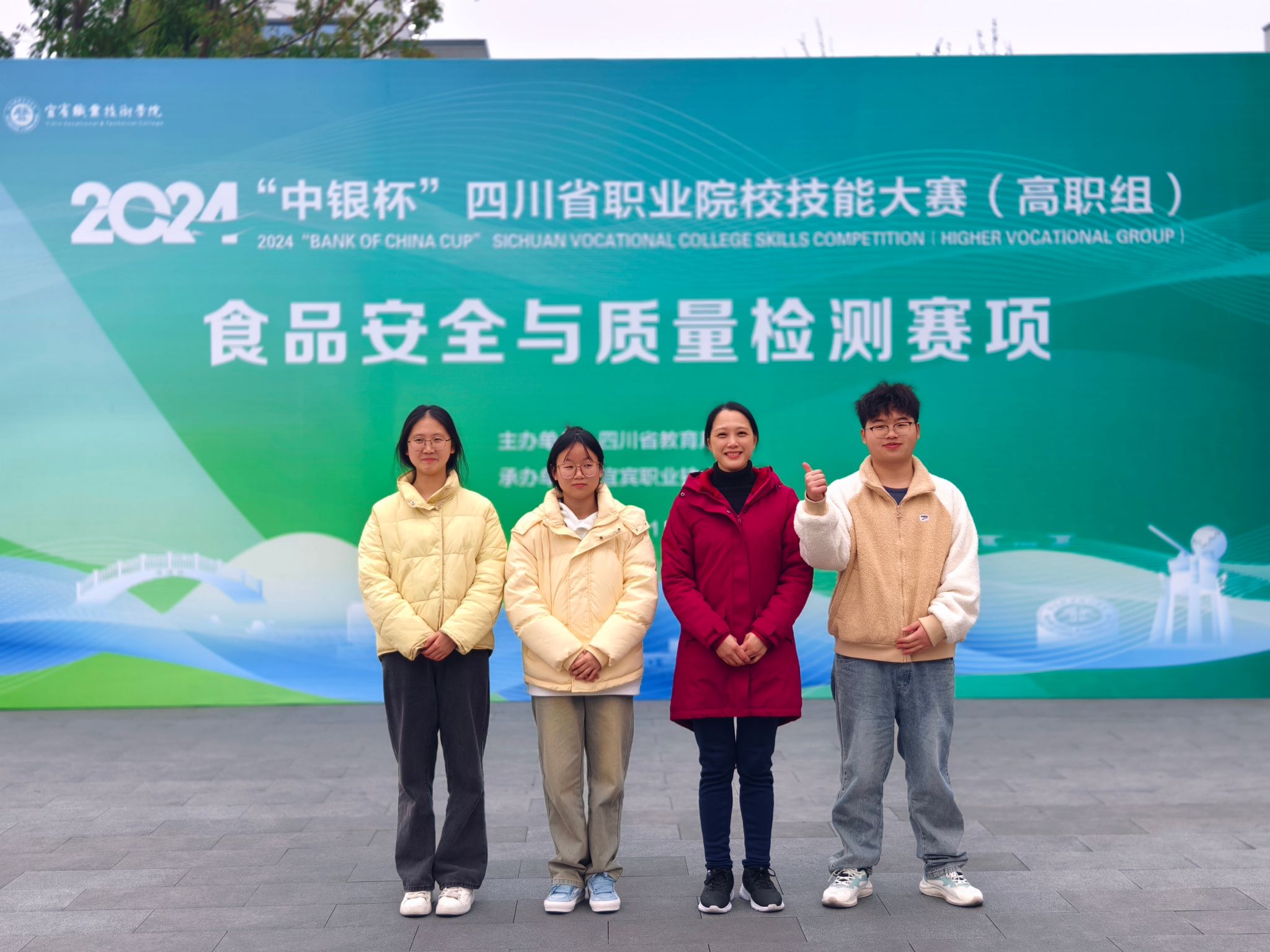 1月3-6日,由四川省教育厅主办的2024 年“中银杯”四川省职业院校技能大赛食品安全与质量检测赛项在宜宾职业技术学院落下帷幕。本赛项为团队赛,共有全省16所高校32支队伍参赛。学院教师邹东辰、梅茜指导的2023级分析检验技术专业学生蔡晓天、漆慧妹获得二等奖,谢碧秀、宋儒霞指导的2023级分析检验技术专业学生范绍国、李娅芳、潘琦琪获得三等奖。