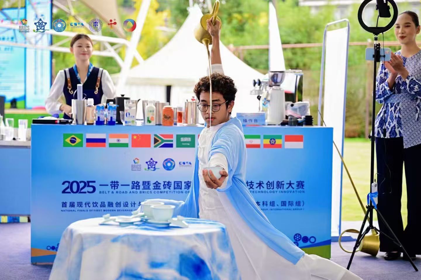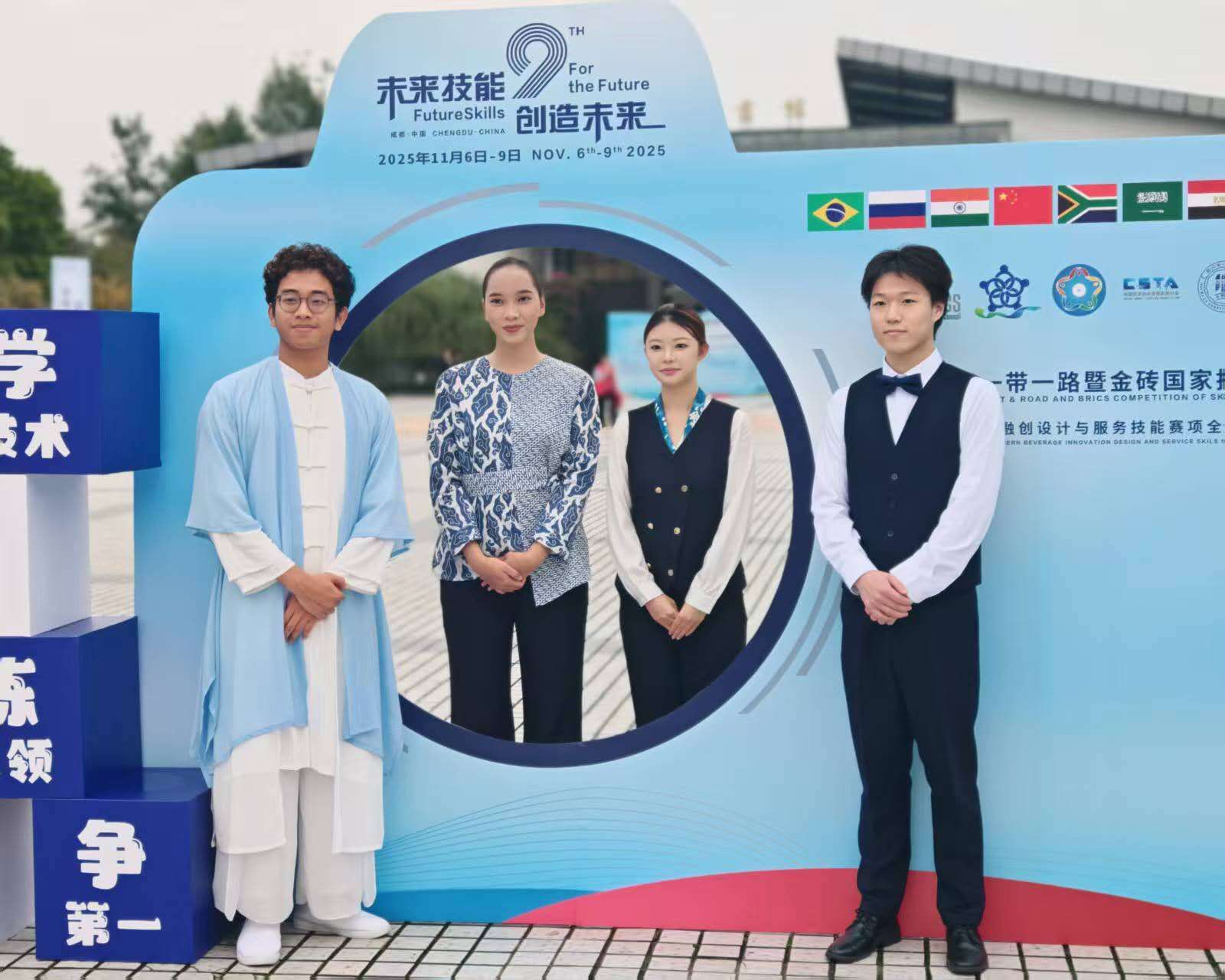 近日,2025“一带一路”暨金砖国家技能发展与技术创新大赛首届现代饮品融创设计与服务技能赛项全国总决赛在四川省旅游学校落下帷幕。由我校天府新能源新材料产业学院印尼留学生杨文、冉梦组成的参赛团队表现优异,荣获全国总决赛国际组一等奖。