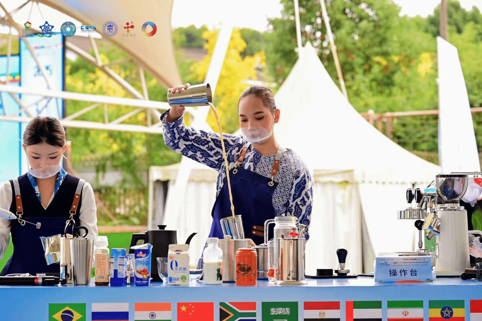 本次大赛吸引了来自全国及海外的55支代表队、200余名选手同台竞技。赛事要求选手全面考核饮品设计方案、现场制作与展示等环节的综合技能。备赛期间,学校高度重视,精心组织,旅游与财贸学院教师李倩、刘锲、黄芮担任指导教师团队,为参赛学生制定了系统科学的训练方案。师生团队充分利用时间,反复打磨作品,在原料搭配、工艺优化及文化融合上精益求精。