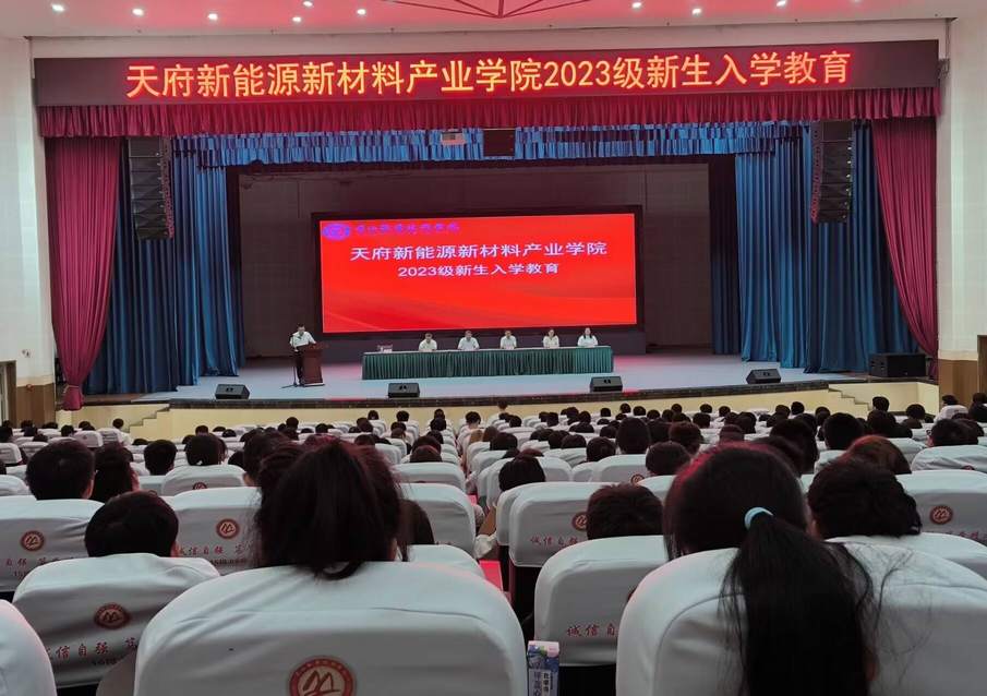9月13日,天府新能源新材料产业学院在学校艺术中心开展2023级新生入学教育与专业教育大会。学校党委委员、宣传统战部部长、产业学院党总支书记丁盛,产业学院党总支副书记、院长贺明峰,副院长王素君出席会议。会议由产业学院党总支组织员李卓桃主持。