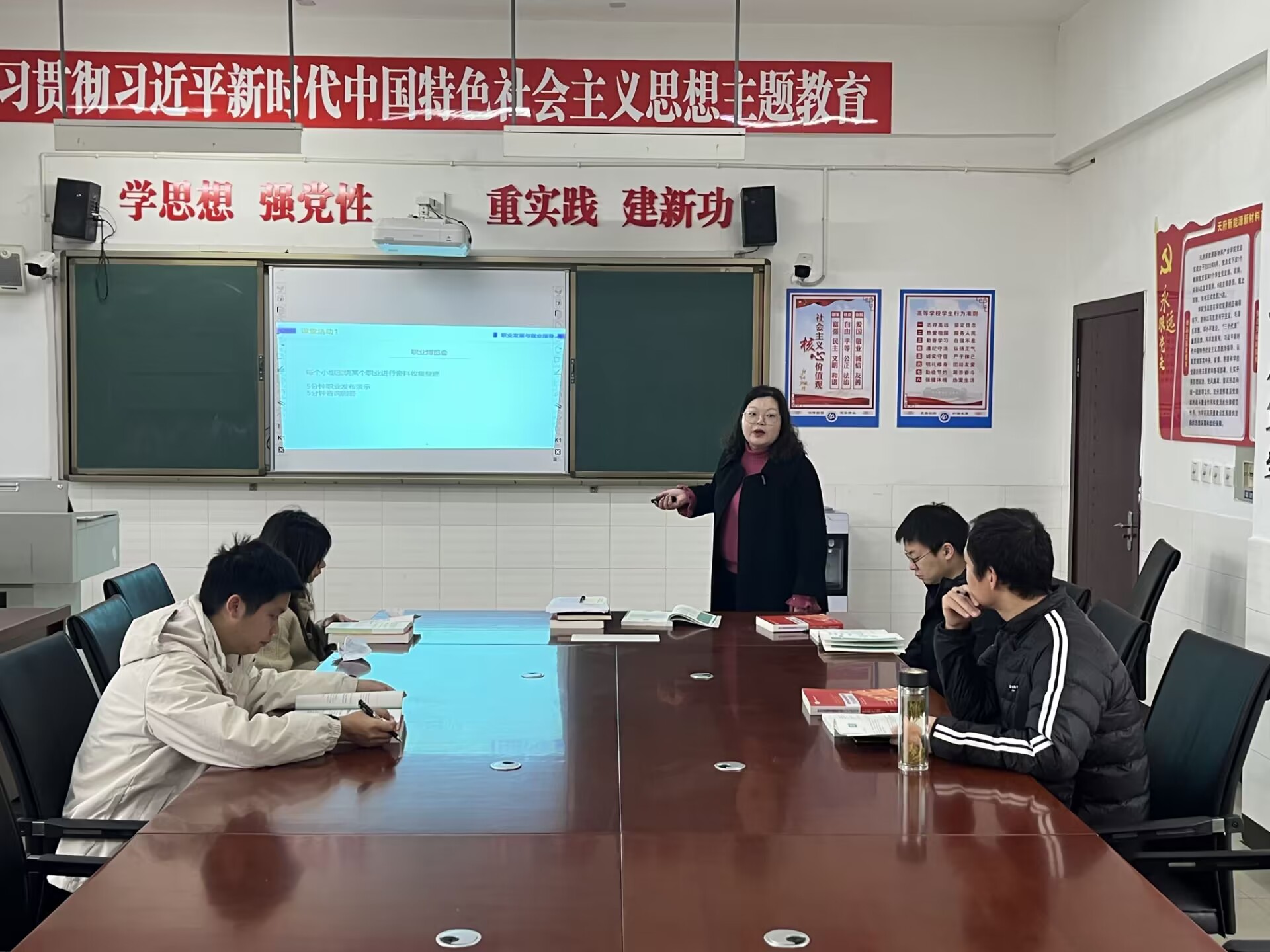 会上,罗珍向大家展示《高职职业发展与就业指导教程》中自我认知、职业认知的课程内容讲授,分享本门课程的授课心得与方法,整个过程思路清晰、重难点突出。课后全体学工人员对本次课程的教案撰写、课程授课等进行讨论,结合学生专业特点和典型案例,群策群力进行思考和探讨,最后达到一致统一,立志上好本门课,达到育人效果。