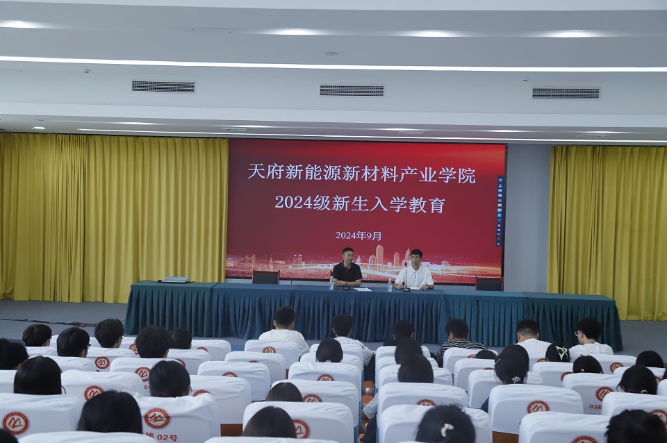 9月8日,天府新能源新材料产业学院在招生就业中心二楼会议室分专业召开2024级新生入学教育,学校党委委员、宣传统战部部长兼天府新能源新材料产业学院党总支书记丁盛出席入学教育并作入学第一讲。