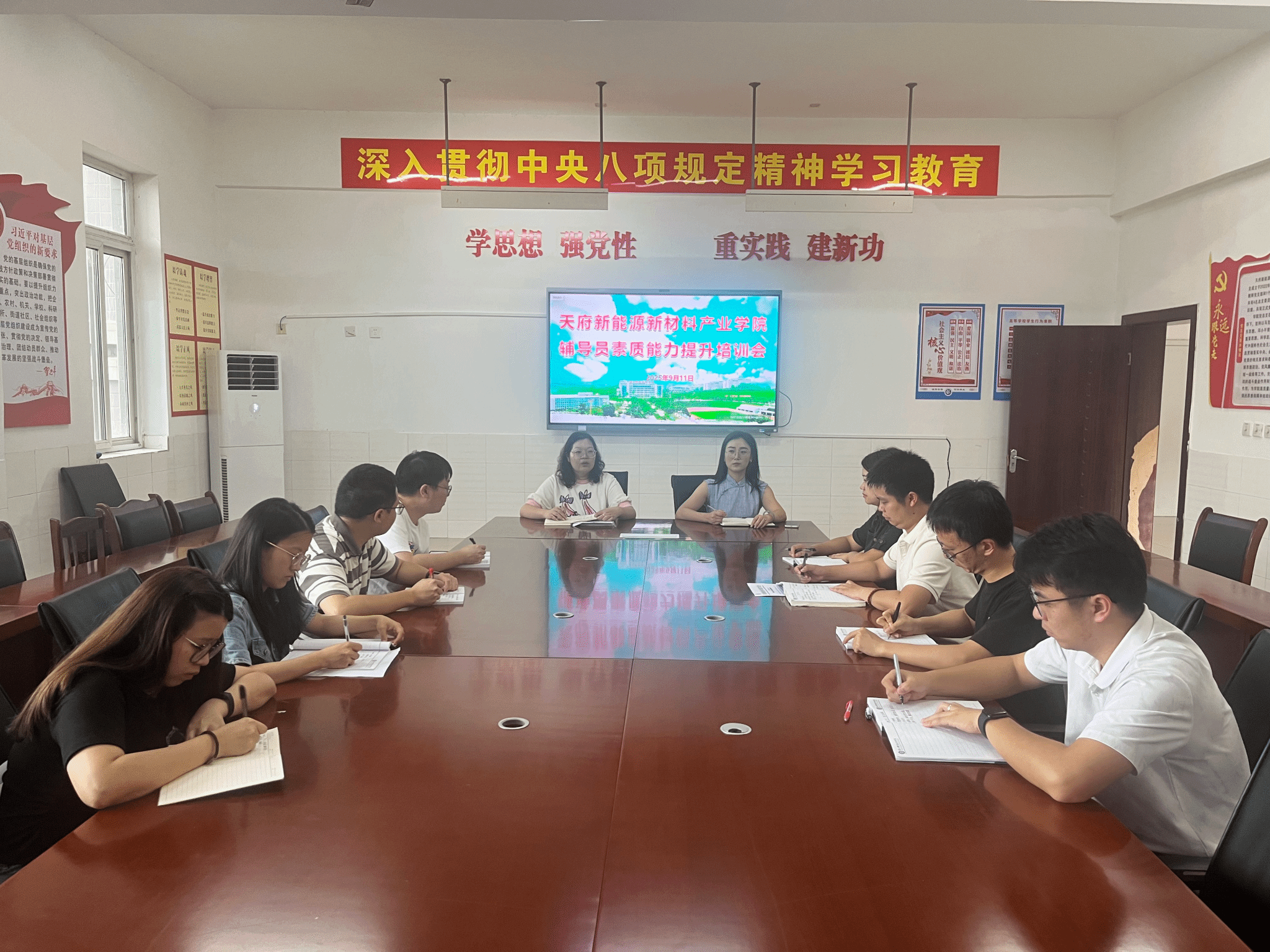 9月11日,天府新能源新材料产业学院在第一教学楼1207党员活动室组织召开辅导员素质能力提升专题培训会,产业学院党总支副书记刘菲出席会议并讲话,全体学工人员参会学习。