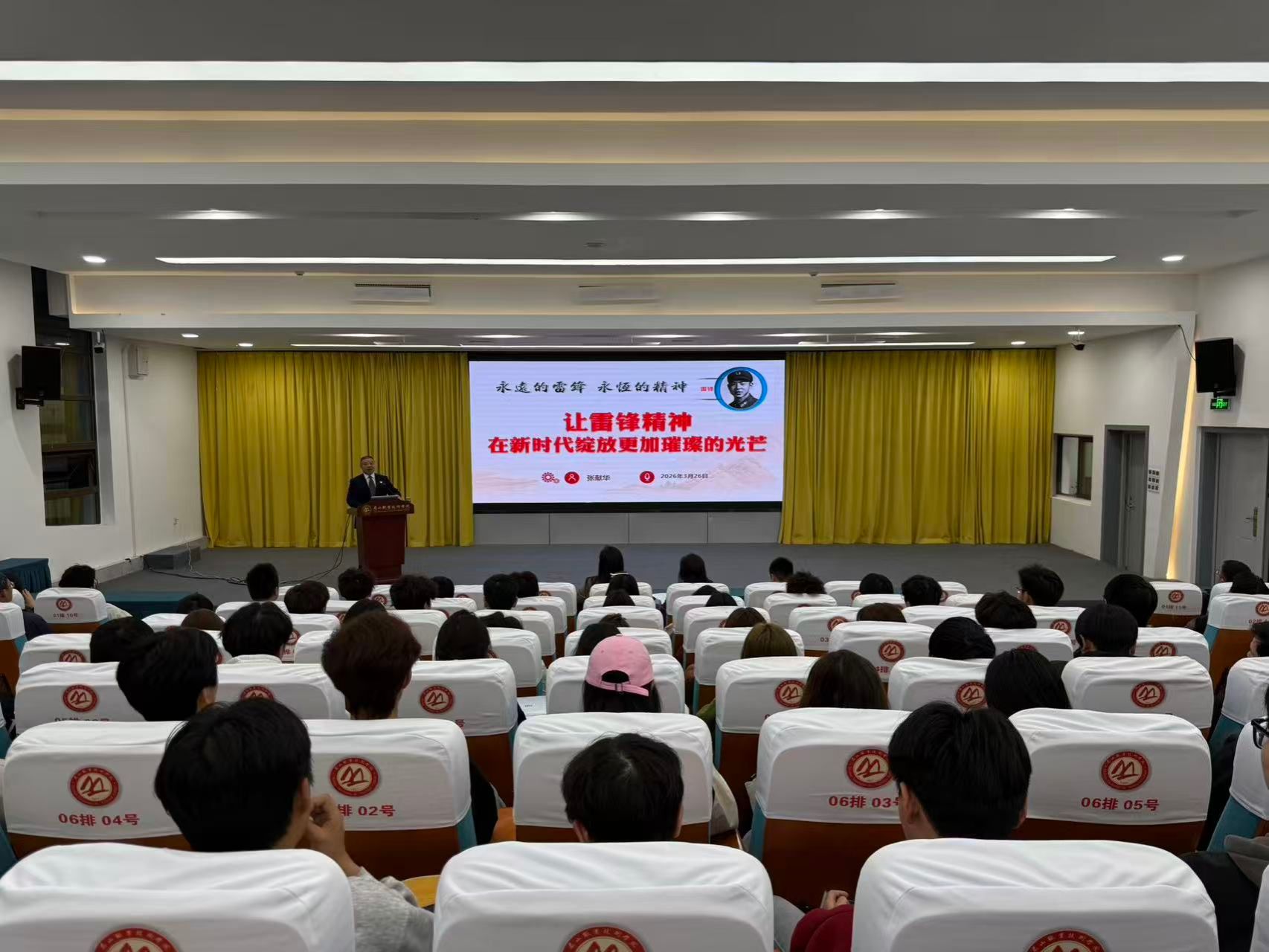 此次宣讲会特邀学校退休干部、副教授、四川省关工委“五老”宣讲团成员、眉山市关工委青少年思想道德教育宣讲团成员张献华同志作《让雷锋精神在新时代绽放更加璀璨的光芒》主题宣讲。