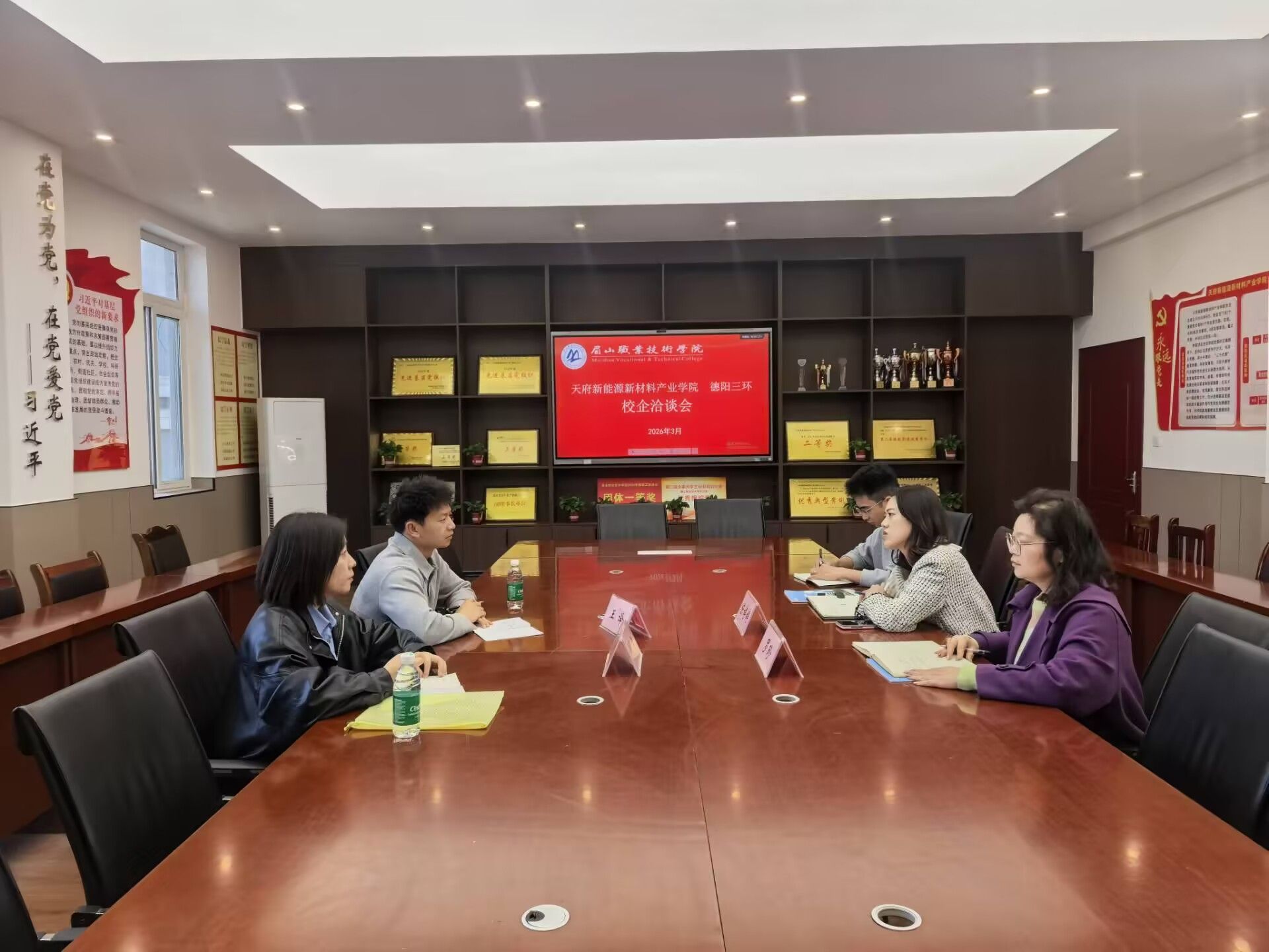 3月31日,天府新能源新材料产业学院与德阳三环科技有限公司校企合作洽谈会在学校1207党员活动室顺利召开。学院副院长陈婷婷,德阳三环人力资源部经理王译、刘幸出席会议并交流发言,会议由学院学工秘书罗珍主持。