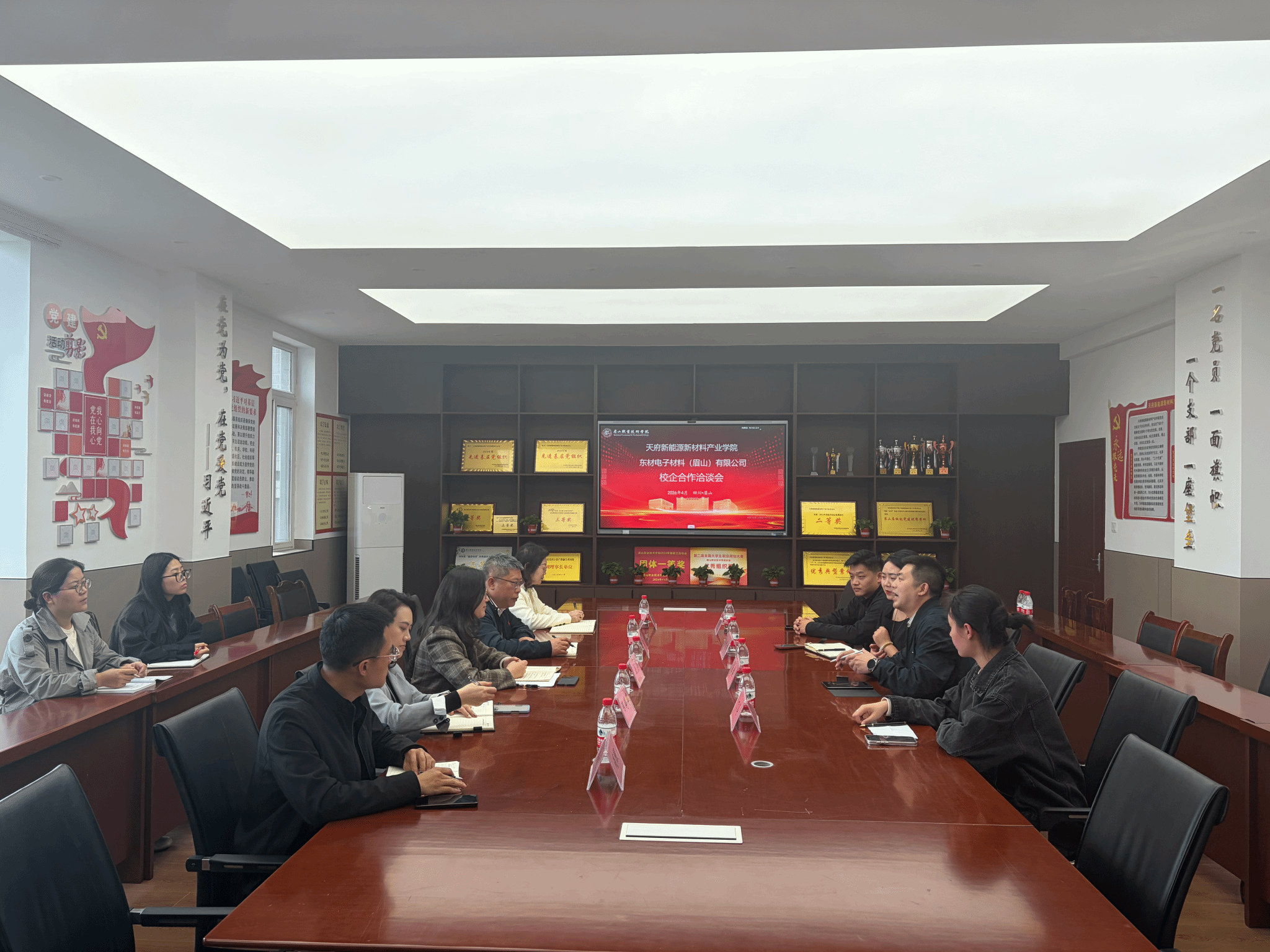 4月1日,天府新能源新材料产业学院与东材电子材料(眉山)有限公司在第一教学楼1207党员活动室举行交流座谈会。产业学院党总支副书记刘菲、副院长王素君、东材电子材料(眉山)有限公司总经理唐建出席座谈会。