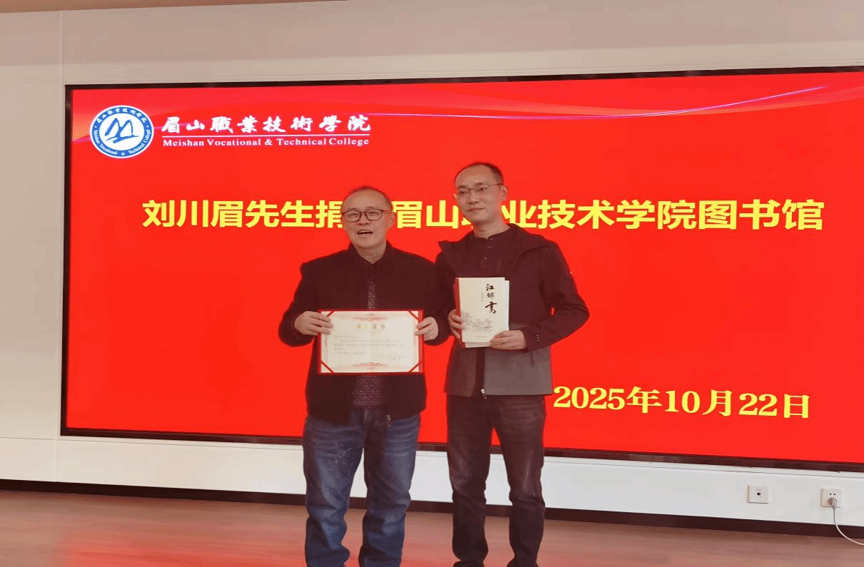 2025 年 10 月 22 日,眉山职业技术学院图书馆四楼多功能厅眉职讲堂第六讲在此温情开讲。中国苏轼研究学会理事、眉山三苏文化研究院特约研究员、四川省作家协会会员刘川眉以《眉山:郁然千载诗书城》为题,为师生带来一场浸润千年文脉的文化盛宴,同步举行《江乡书》赠书仪式,为校园文化建设注入深厚人文力量。