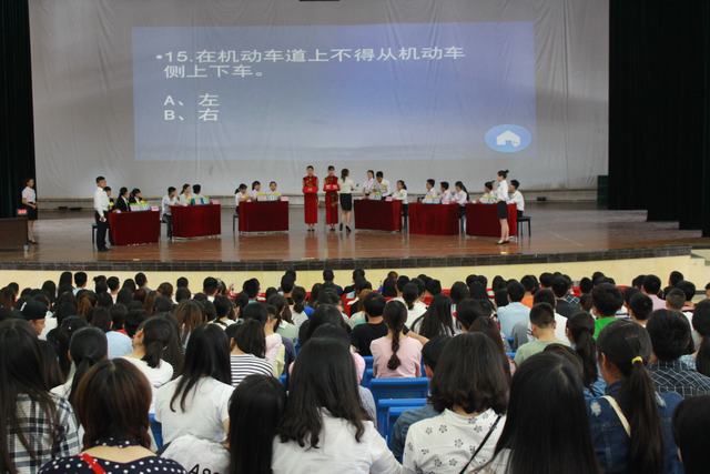 为加强学院学生交通安全知识的学习,遵守交通法规,营造平安出行的宣传氛围,提高学生的交通安全意识,预防交通事故的发生,2016年5月9日,学院在艺术中心举行了交通安全知识竞赛活动。院党委委员、工会主席胡洪安,学生处处长黎维红,学生处保卫科科长孙亮,团委副书记(主持工作)袁娇,中等职业教育部党总支副书记(主持工作)陈菊仙等应邀参加了活动。