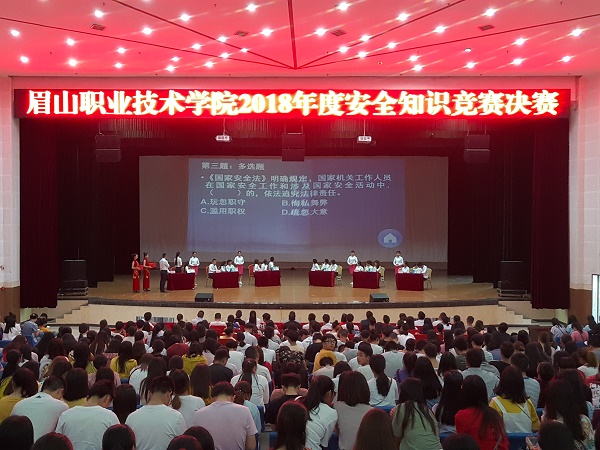 为进一步普及安全知识,提高全校师生安全意识,营造浓厚的平安校园氛围,5月23日下午,由学校学生处主办的2018年度安全知识竞赛决赛在艺术中心举行。各系部6支代表队伍共18位选手参加了此次决赛。