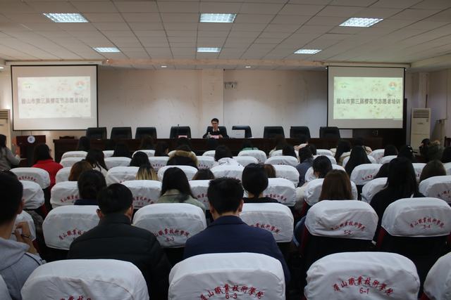3月9日—10日,眉山市第三届樱花节志愿者培训会在我校学术报告厅举行,岷东新区团委书记朱玺、培训师周晓红教授出席本次培训会。
