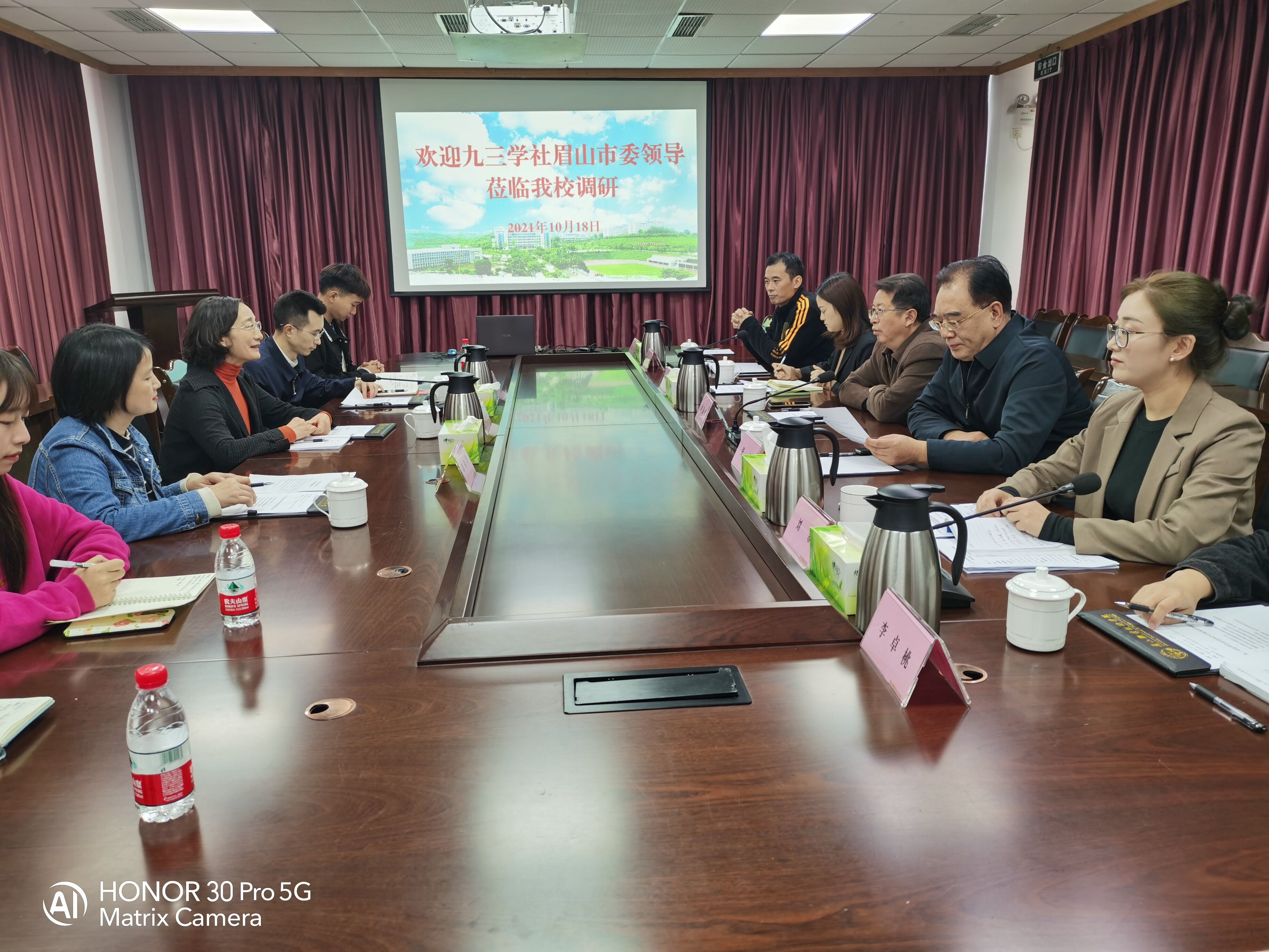 10月18日下午,九三学社眉山市委专职副主委兼秘书曹水桂、成都理工大学客座教授周和平、九三学社会员谭福华(原市就业局四级调研员)一行莅临我校开展《青少年自我教育模式推广的探索》课题调研工作。学校党委委员、副院长张望,党委委员、副院长胡洪安,学生工作部副部长刘菲、校团委副书记罗利爽、招生就业办公室干事陈建波、中等职业教育部辅导员李卓桃,及3名学生干部代表参加会议。