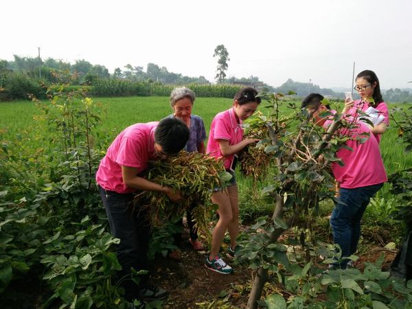 (志愿者们帮助农民们劳作)