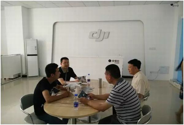 (在校创业大学生大疆无人机负责人刘鑫在正与领导交流)