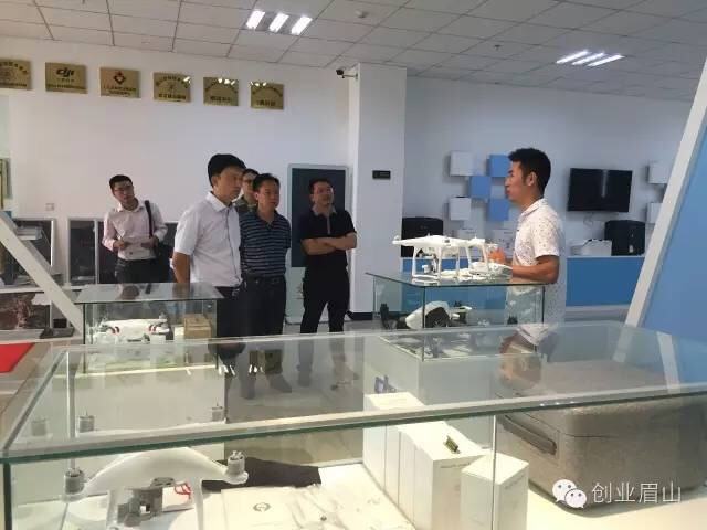 李维义边听取园区情况汇报,边查看园区的公共配套设施,一行人到孵化园展示大厅、政务服务区、开放式办公区、创客咖啡、独立式办公区逐一查看园区设施设备情况,就创业就业工作推进情况进行了解。听取完汇报后,李维义对东坡创客孵化园入驻企业进行调研,并走访了眉山职业技术学院校外创新创业实践中心创业孵化项目“眉山市大智无疆商贸有限公司”,该项目是我院师范教育系2014级学生刘鑫所负责,主营业务为无人机销售和平台开发。李维义在了解发展情况后,与创业者进行交流,并勉励创业者用好孵化园这个创业平台,积极开拓市场,祝愿创业青年早日创业成功。