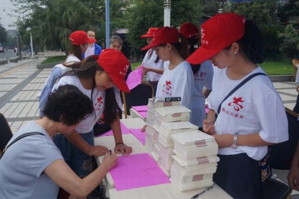 60名志愿者到达指定地点后,政府相关部门人员向大家介绍了工作内容,随后便将志愿者们分成三组,分别是向周围市民做宣传讲解,设点指导市民关注“文明眉山”微信公众号和做调查问卷,为市民赠送纪念品。在志愿者们的大力宣传下,很多市民都前来扫二维码,关注“文明眉山”微信公众号、做调查问卷,提出了自己宝贵的意见。