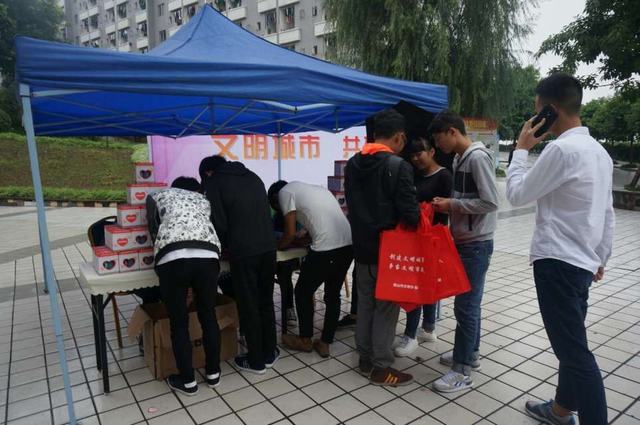 中午,活动在学院中心花园设点 ,由学院团委、院学生会以及社团联合会的干事组成的志愿者团队,通过发放宣传手册、耐心讲解、赠送礼物的方式向过往教职工、同学讲解眉山创建文明城市的重要性与必要性,创建文明城市对学院的益处。老师和同学们积极了解,热情参与到活动中。