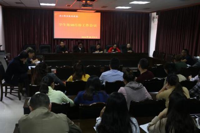 10月9日上午,学院在行政楼底楼会议室召开学生管理工作会议。学院党委委员、副院长胡洪安,纪委委员、学生处处长黎维红、各系部学生工作负责人以及全体辅导员(班主任)参加了会议。