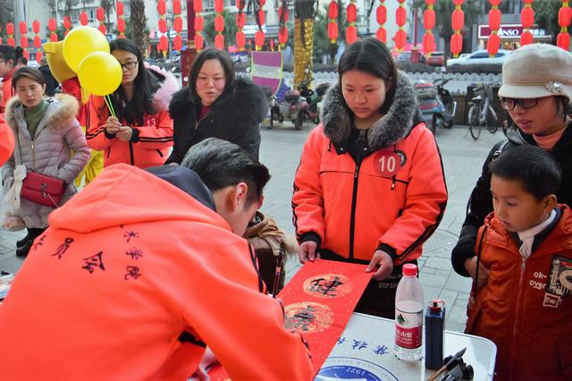 活动开始后,17名志愿者分为2个小组,进行义卖活动。达到目的地后志愿者们迅速就位,摆放海报、展架、横幅和义卖物品。本次义卖准备了卡通气球、生肖发夹、春联、窗花、福字以及手工制品,其中,春联是我校文化艺术系学生现场手写。志愿者们手拿卡通气球,热情地向来往市民宣传本次义卖活动的意义。众多市民驻足关注,积极地献上爱心,还不时无偿捐献,展现了眉山市民良好的国民素质。
