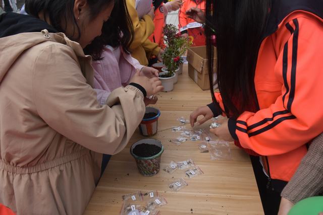 活动前期,工作人员精心布置场地,并准备了DIY创意花盆、种子、盆栽作为本次活动的公益产品进行义卖。活动中,现场热闹非凡、人头攒动,吸引了学校师生、食堂工作人员的积极参与,大家精心挑选自己钟意的花盆和种子,为公益活动献出了自己的力量。活动最后,在大家的踊跃参与下,活动准备的公益产品全部出售,所获绿色基金将用于购买种植校树,为春光明媚的眉职校园增添一抹盎然的绿意。