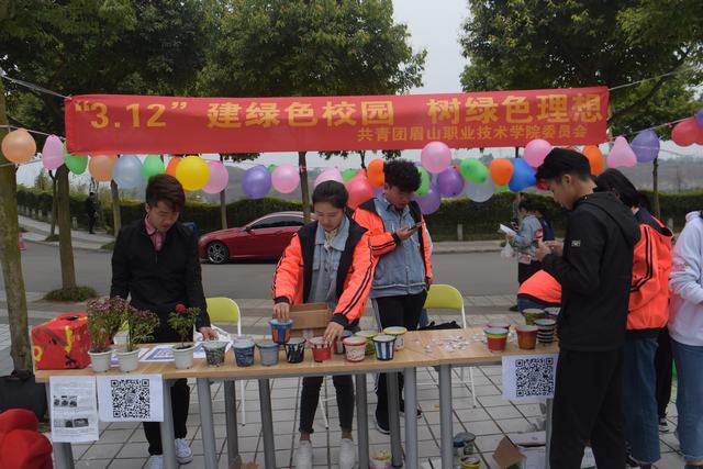 3月12日是我国第39个“植树节”,为进一步深入学习习近平总书记系列重要讲话精神,贯彻落实“绿水青山就是金山银山”的发展理念,增强学校学生生态环保意识,团委宣传部12:10在食堂门口组织开展了以“追求时尚环保,建设常青眉职”为主题的植树节公益活动,全院师生积极参与了本次活动。