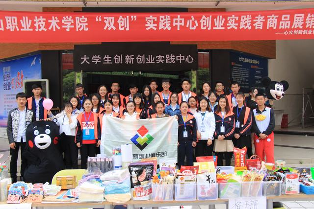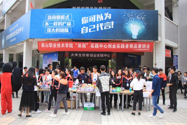 3月29日12:00,学校“双创”实践中心商品展销会盛大开幕。创新创业俱乐部成员在实践中心门口搭建一个临时的“商场”,共设置4个摊位,“眉职东坡”文创店、慢递吧等6个商家、彭楠、段涛等7位创业学生参展。