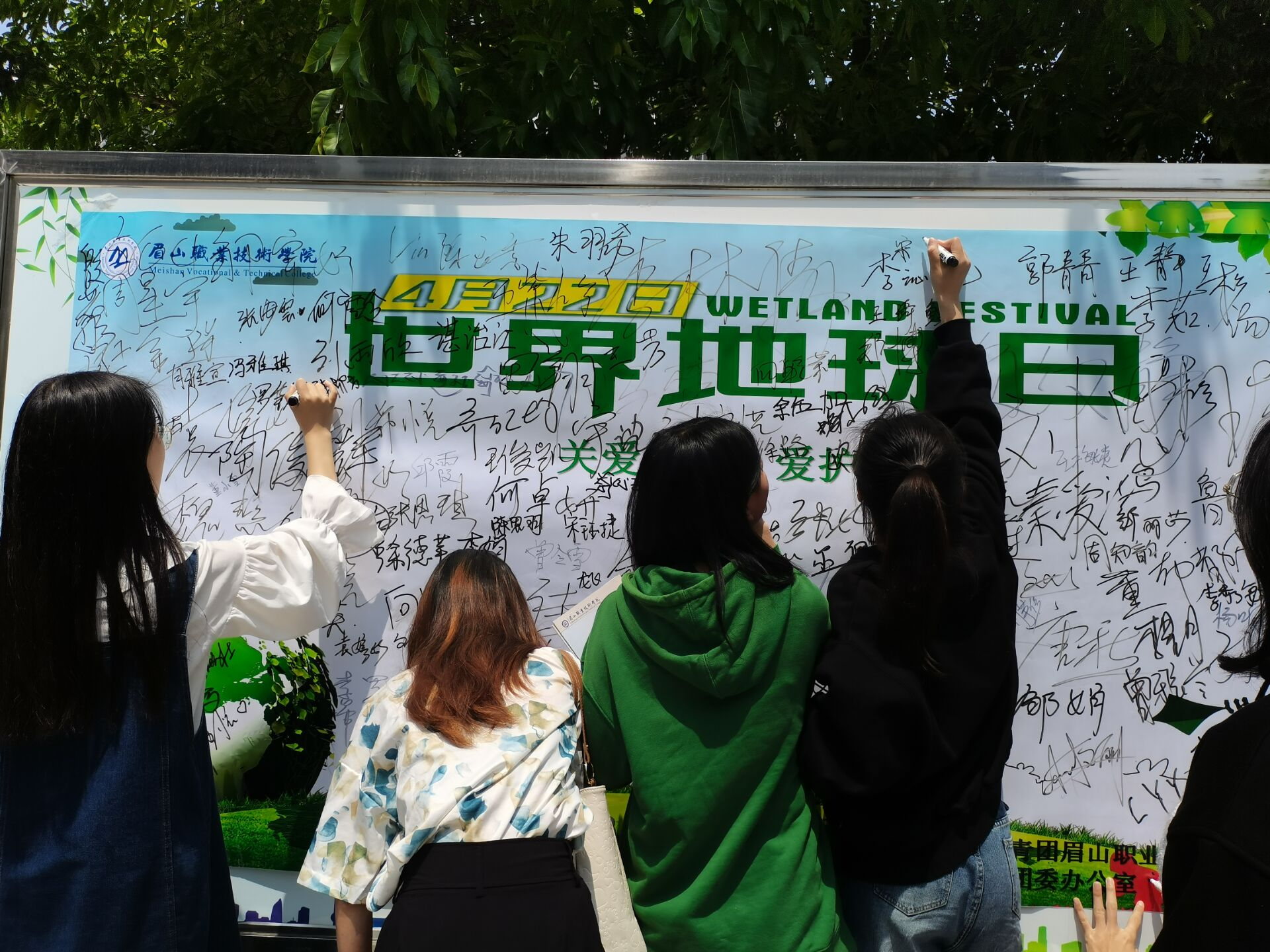 活动现场,校团委志愿者围绕地球日的来历、保护地球的重要性、垃圾分类知识、节水节电知识等进行现场宣讲。宣讲吸引了许多师生驻足观看,并在签名板上写下环保宣言。此外,在校团委的倡导下,全校团支部利用晚自习,开展了“关爱地球,爱护环境”主题活动,支部宣传委员开展主题宣讲,同时根据班级团支部具体情况开展特色活动。