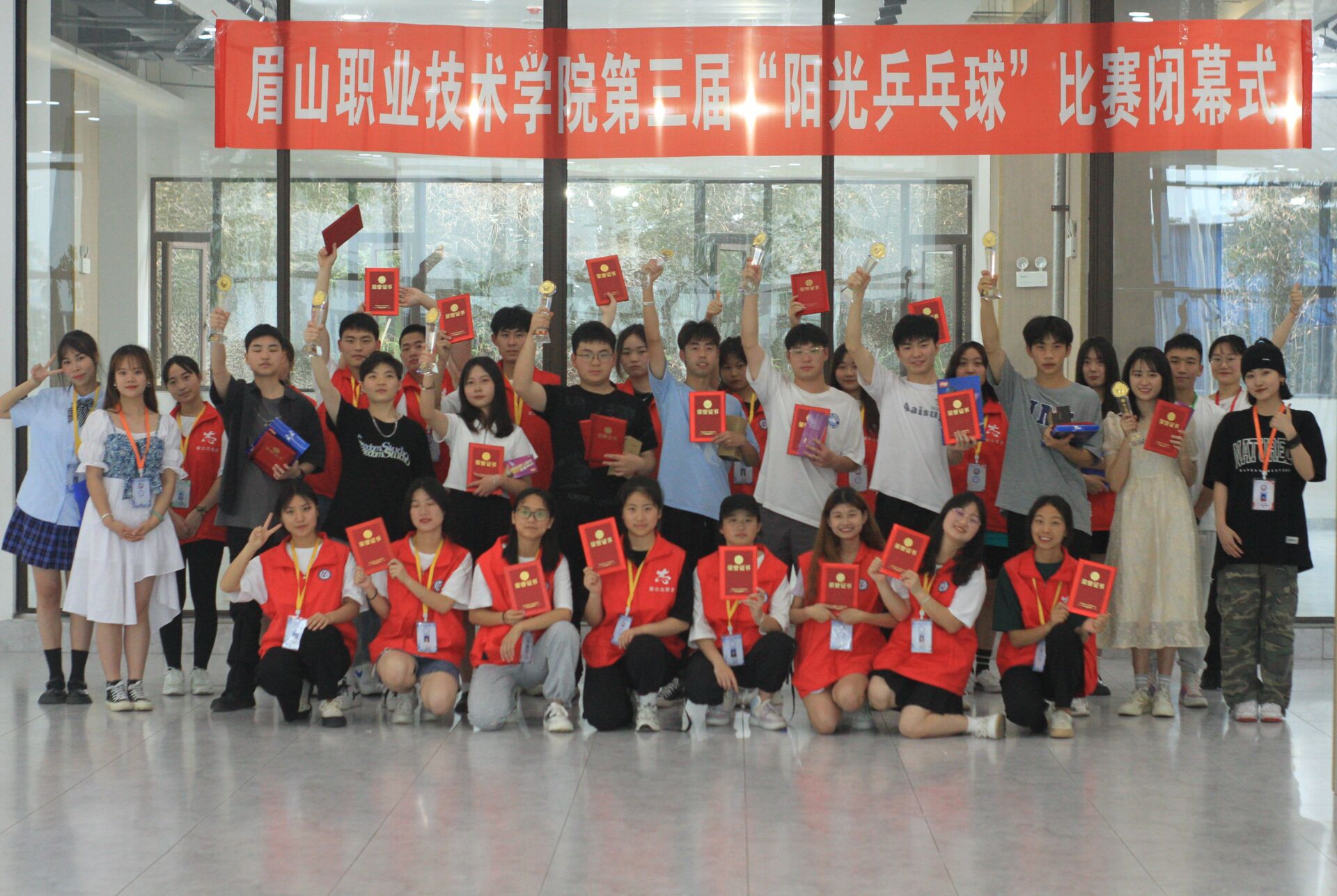 5月12日,由眉山职业技术学院主办,校学生会文体部承办的第三届“阳光乒乓球”闭幕式在学校图书馆负一楼(体育馆旁)顺利举行。
