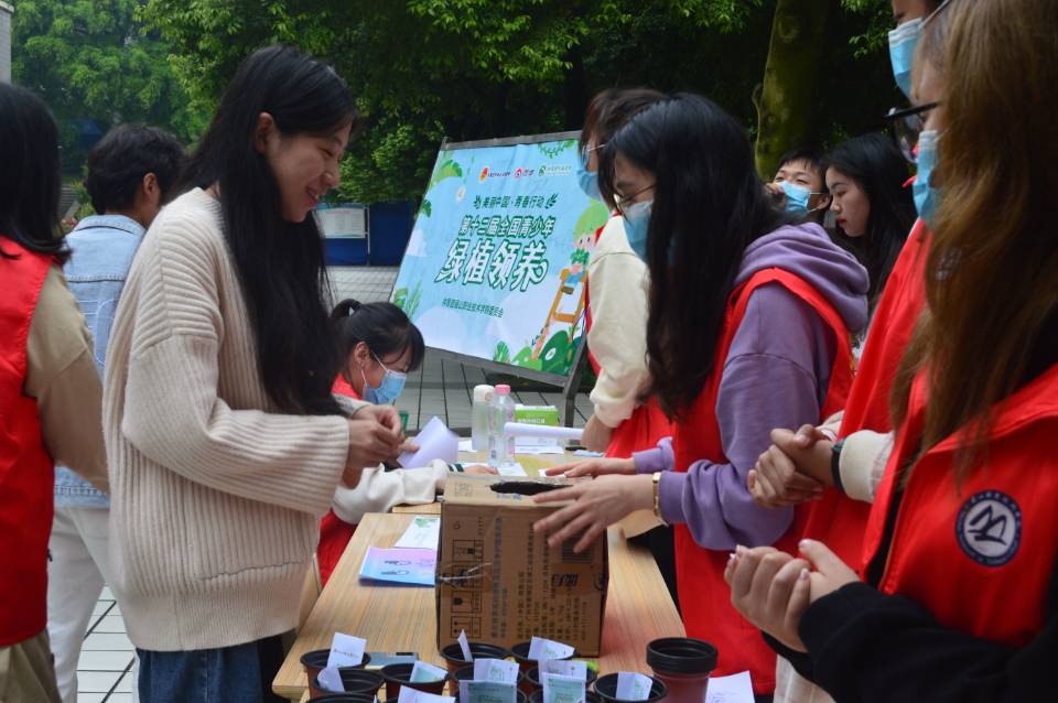 本次活动积极响应团中央关于开展全国第十二届青少年绿植领养活动的号召,以线上线下紧密联合互动的形式开展。学生线上通过发微博助力获取领取资格;线下通过进行旧物兑换、参与环保知识竞答、环保绘画等游戏获取领取资格。活动现场,同学们参与热情高涨,反响热烈,成功领取植物的同学在签名板上写下寄语,纷纷表示以亲身践行绿色理念,将环保融入校园生活。