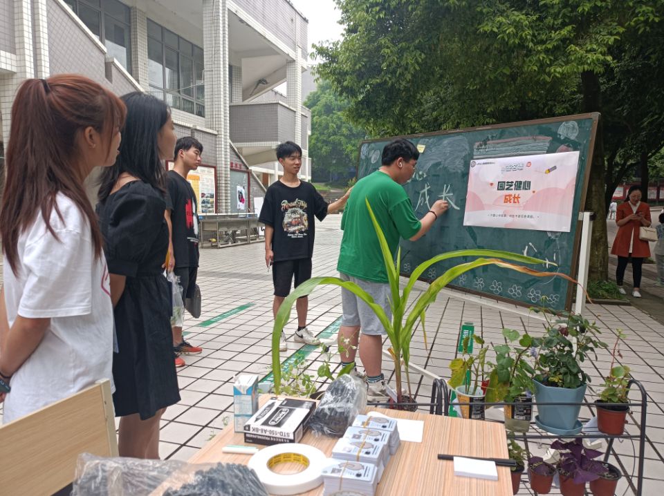 活动现场,同学们络绎驻足观赏植物展出,阅读领养人在花盆上留下的感悟,并在“珍爱心灵”签名墙上记录观看感悟,向生命与成长书写寄语。