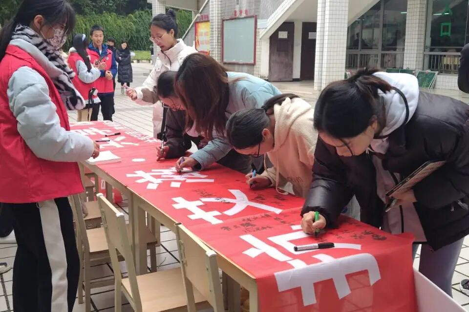 讲座结束后,团委组织学生在西苑食堂门口开展了“共抗艾滋,共享健康”签名活动。
