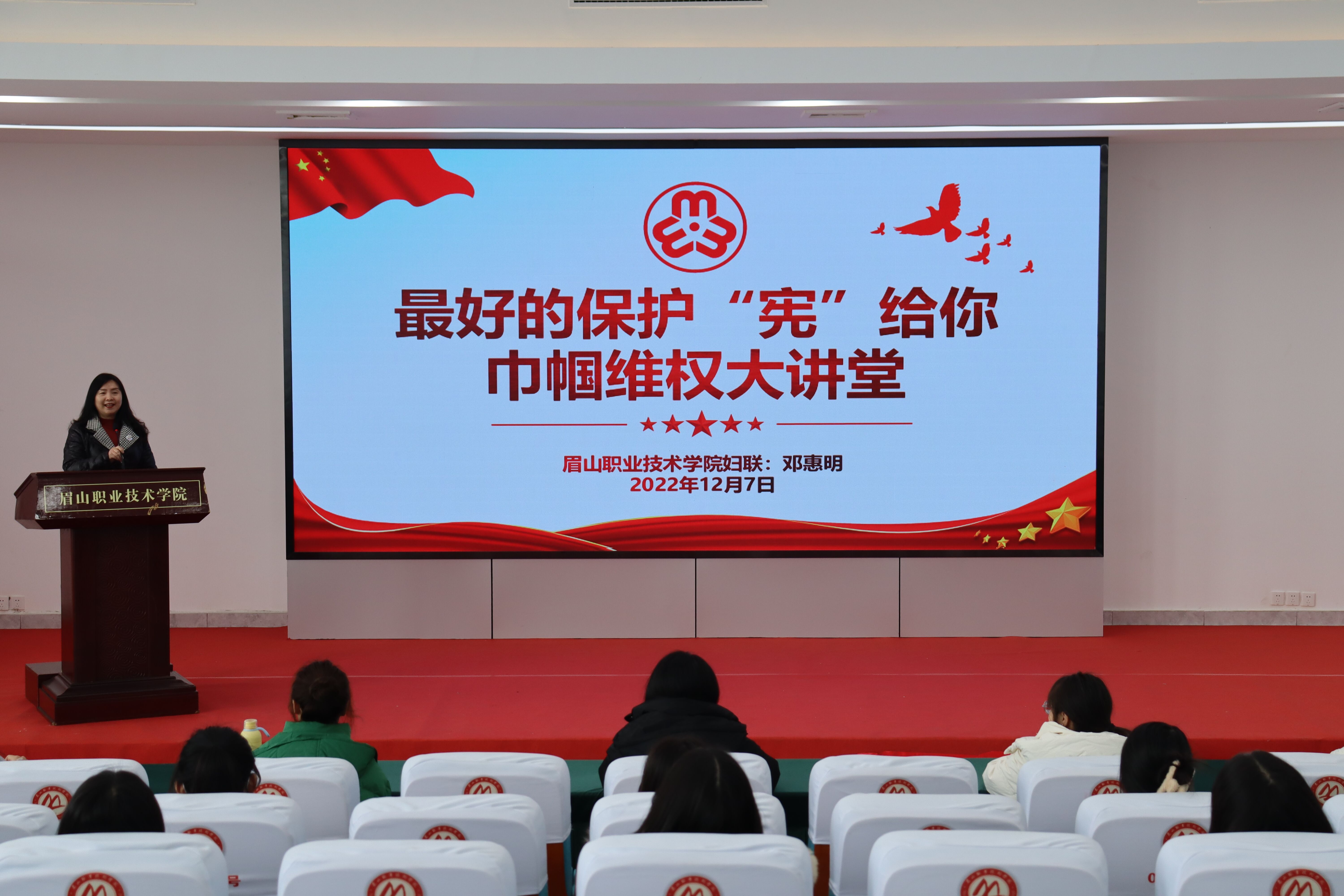 为深入学习贯彻党的二十大精神和习近平法治思想,持续开展国家宪法日普法宣传活动,12月7日,学校妇联联合团委在招就中心二楼会议室开展“最好的保护‘宪’给你”巾帼维权大讲堂活动,妇联主席邓惠明主讲,50名女学生干部现场参加活动。