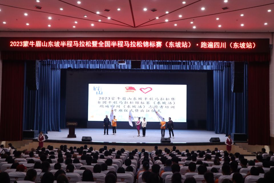 3月16日,2023蒙牛眉山东坡半程马拉松暨全国半程马拉松锦标赛(东坡站)·跑遍四川(东坡站)青年志愿者培训开班仪式暨出征仪式在艺术中心顺利举行。学校团委副书记罗利爽、团东坡区委代表段姝莉、商贸旅游系团总支书记李一民、赛事总指挥王浩、赛事技术顾问曾正泽、赛事总管吴向明、成都中体大健康总经理王明阳出席本次会议。