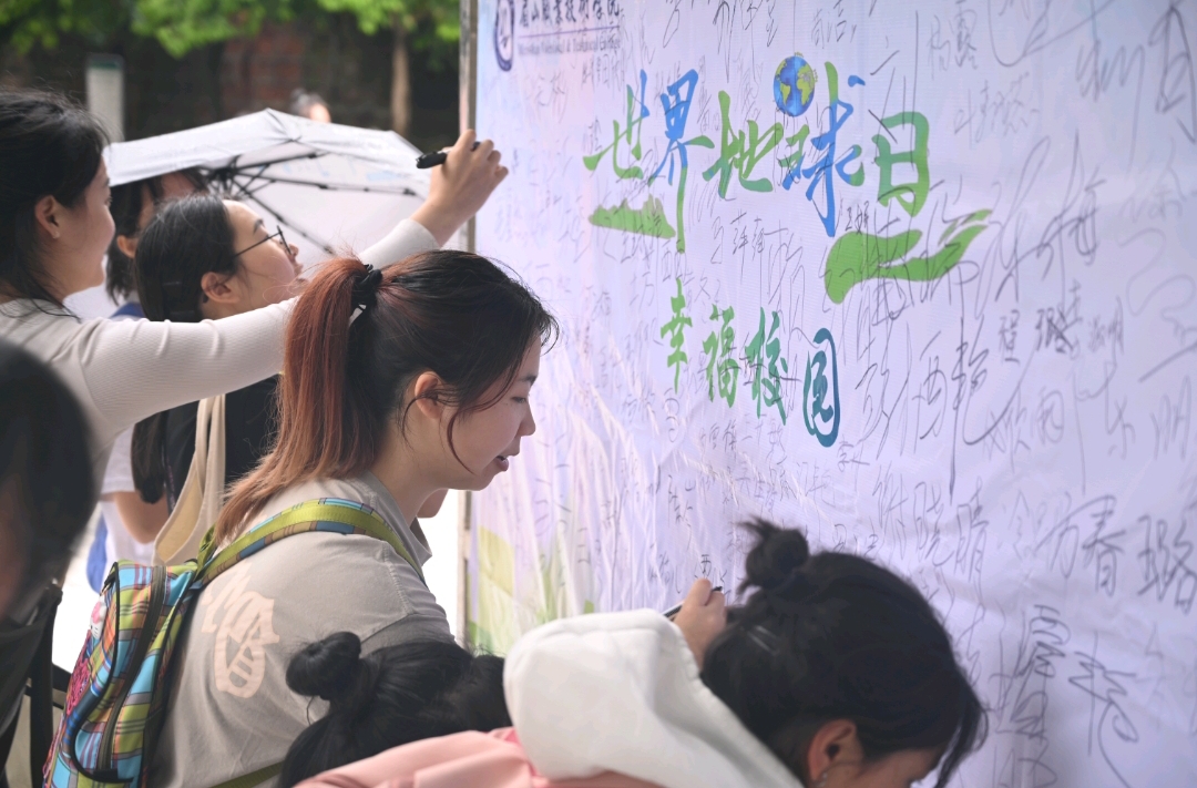 团委组织10余名志愿者于西苑食堂门口举办了“幸福校园·世界地球日”主题签名活动。现场学生踊跃参与,表达爱护地球的决心。